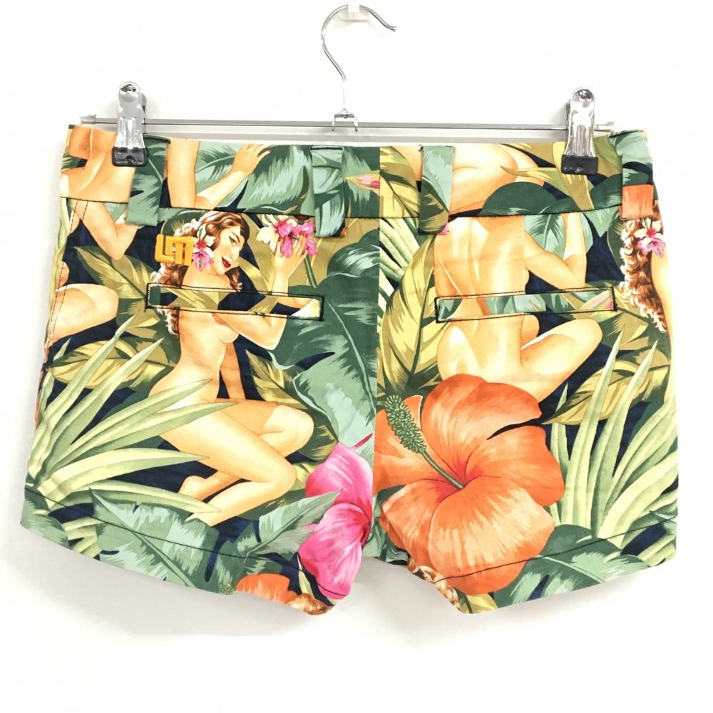 【超美品】ラウドマウス ショートパンツ グリーン×ベージュ 総柄 ハイビスカス レディー レディース US-2 ゴルフウェア LOUDMOUTH