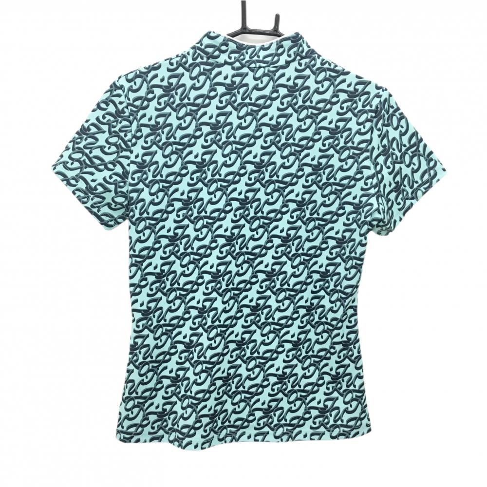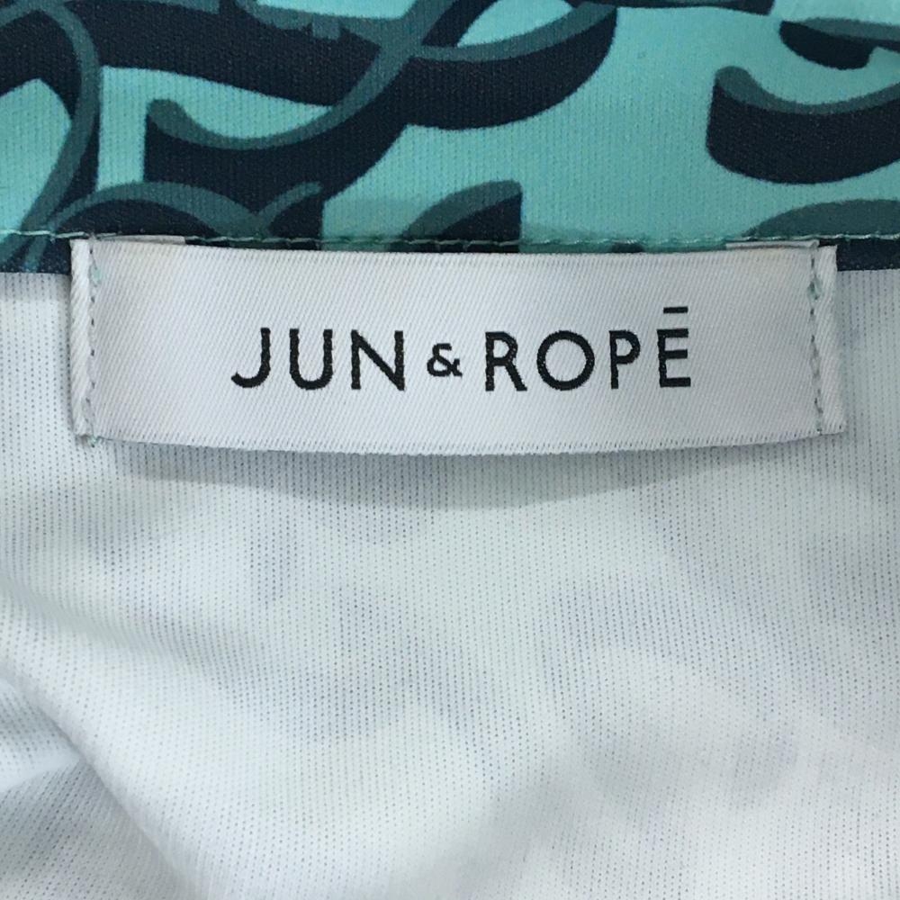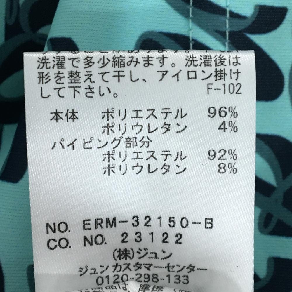 【超美品】ジュンアンドロペ 半袖ポロシャツ ライトグリーン×ネイビー スタンドカラー 総柄 レディース M ゴルフウェア JUN&ROPE