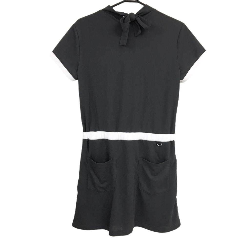 【超美品】キャロウェイ 半袖ワンピース ダークグレー×白 ネック後ろリボン レディース LL ゴルフウェア 2024年モデル Callaway