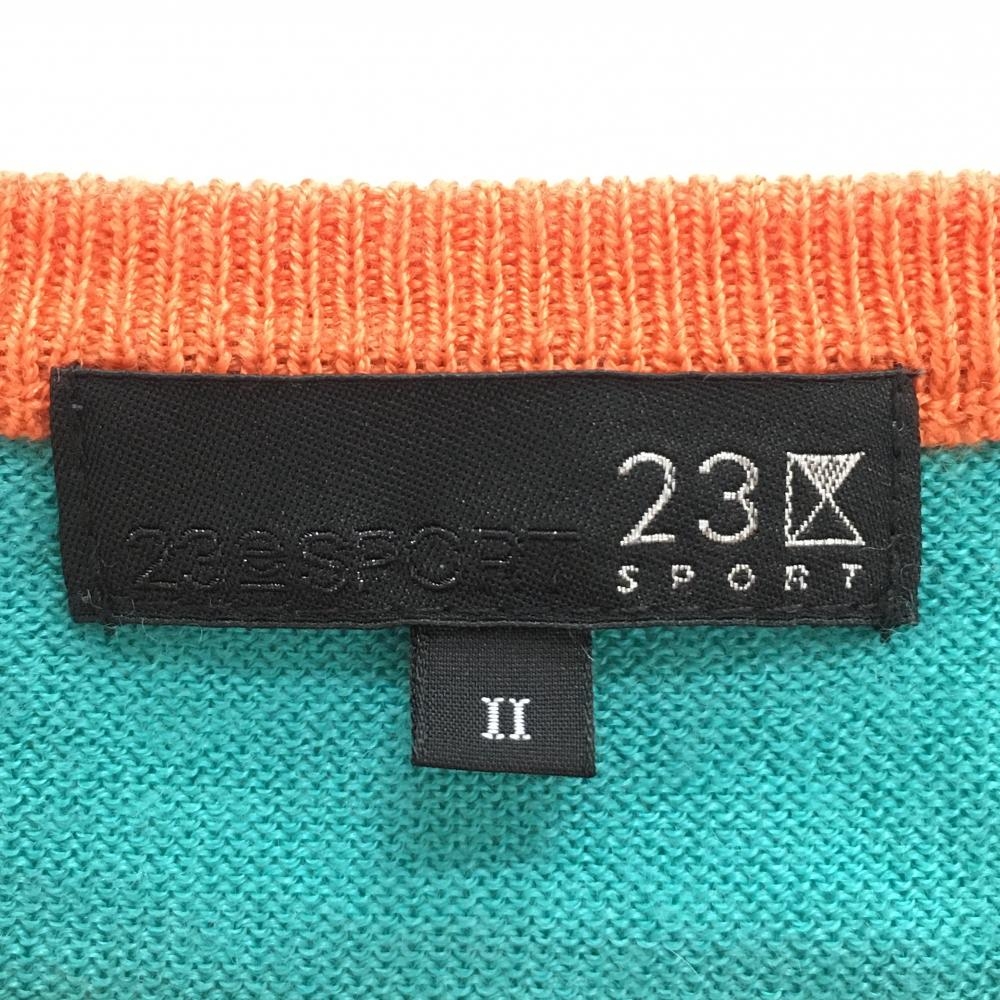 【美品】23区スポーツ セーター オレンジ×ブルーグリーン×白 一部ボーダー ニット ウール混 薄手 レディース II(L) ゴルフウェア 23区