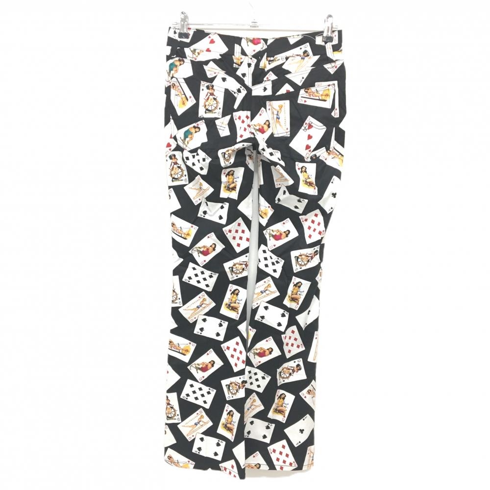【新品】ラウドマウス パンツ 黒×白 総柄 トランプ柄 レディース US-2(L) ゴルフウェア LOUDMOUTH