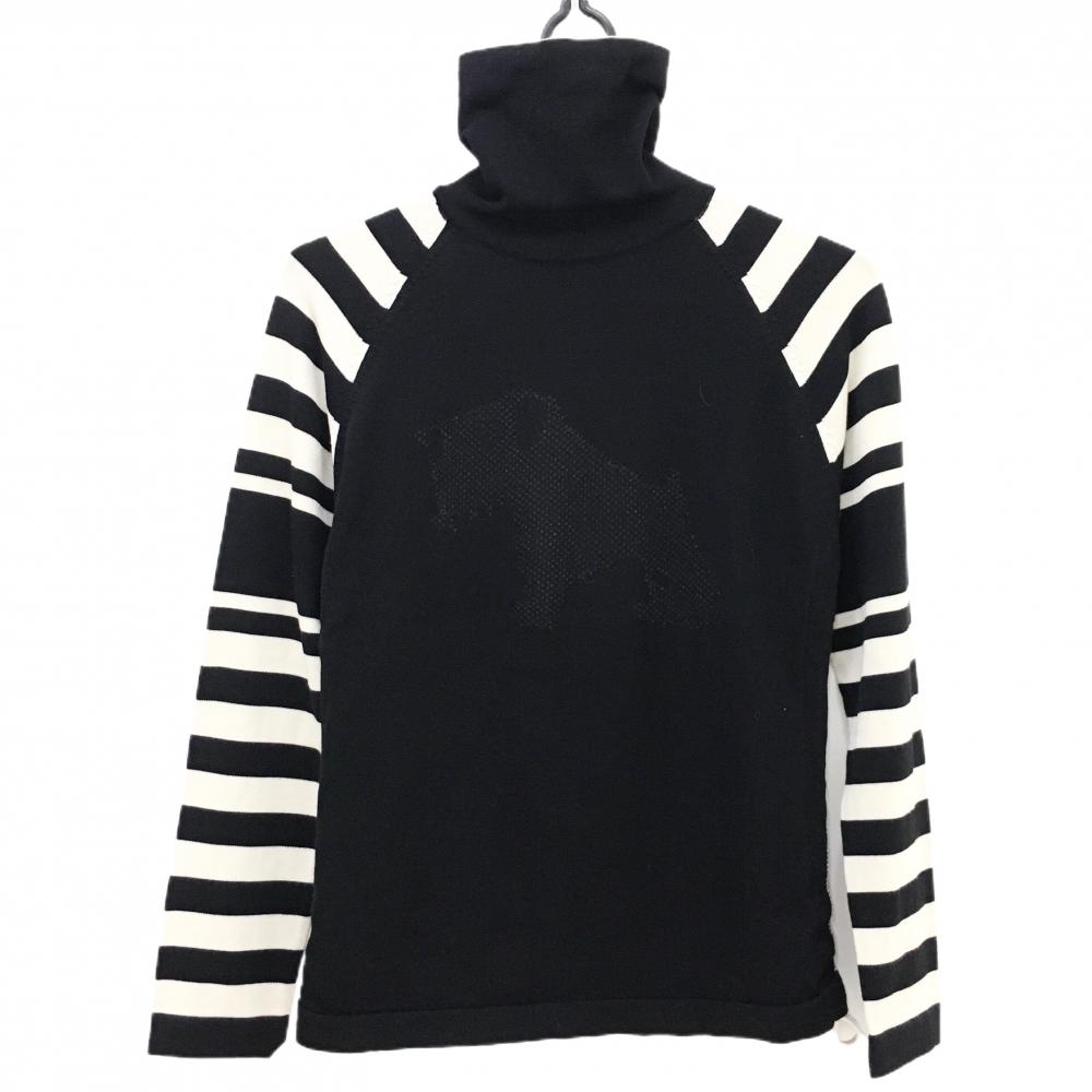 ヒールクリーク タートルネックセーター アイボリー×黒 ボーダー フロントロゴ レディース 40(M) ゴルフウェア Heal Creek