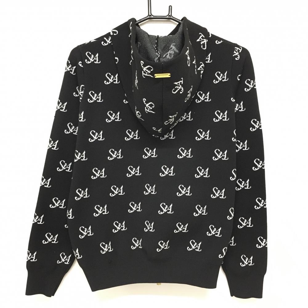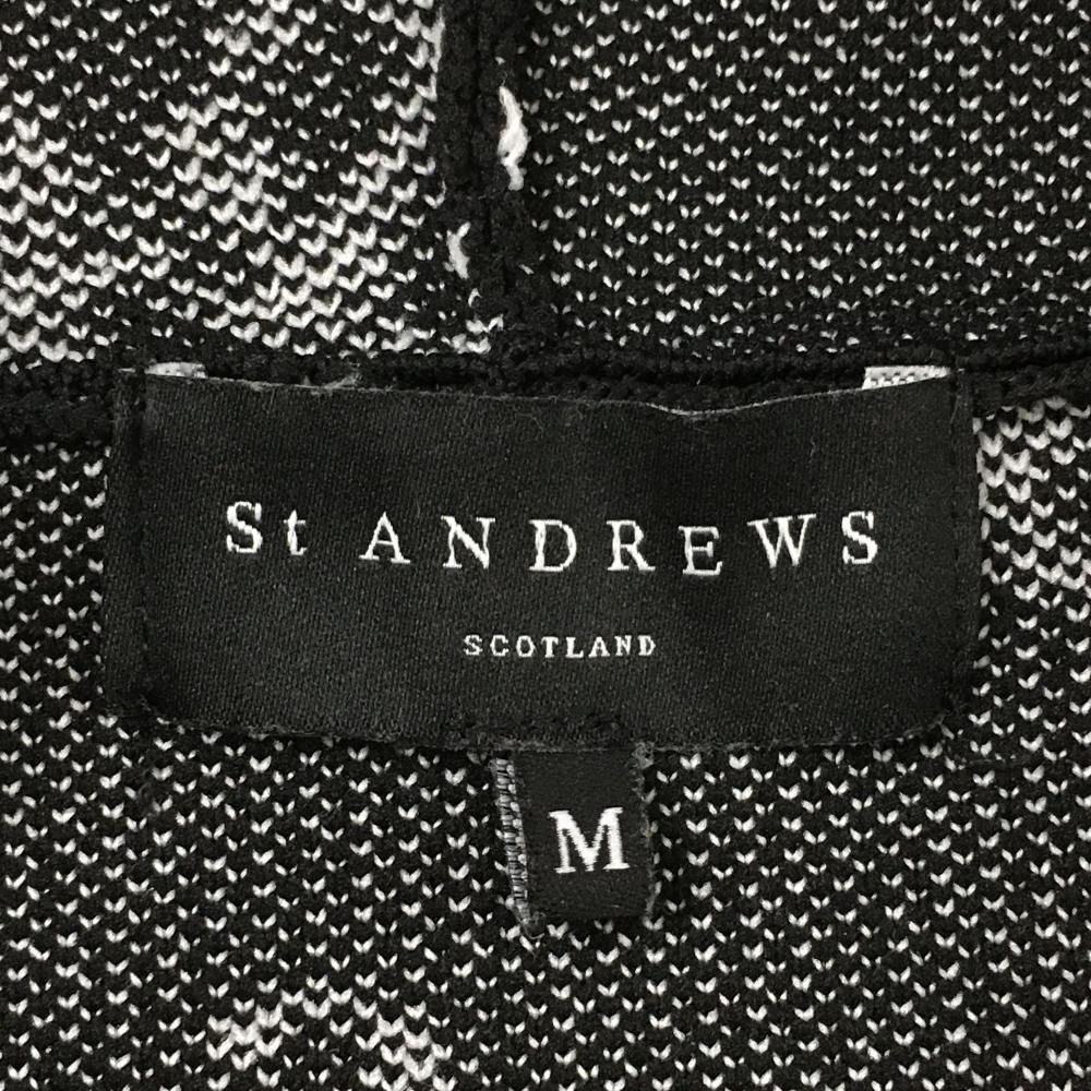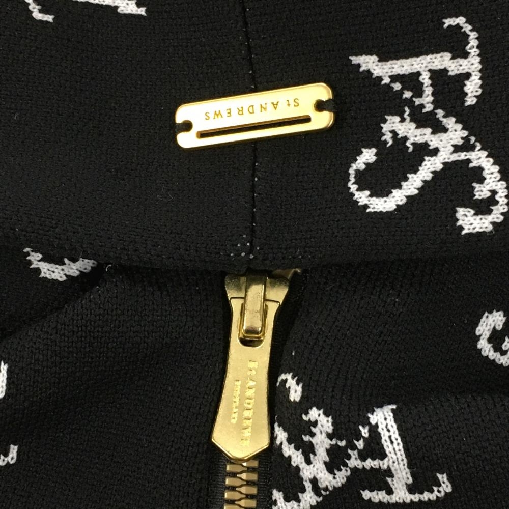セントアンドリュース ニットジップパーカー 黒×白 ロゴ総柄 ダブルジップ レディース M ゴルフウェア 2024年モデル St ANDREWS