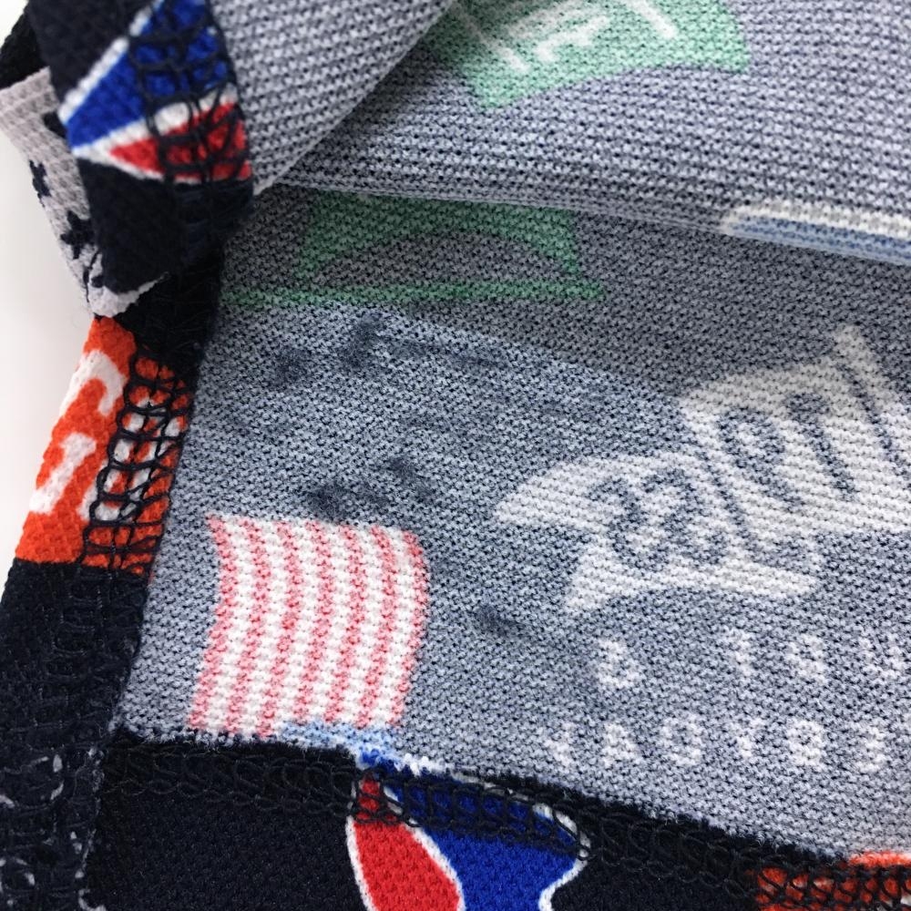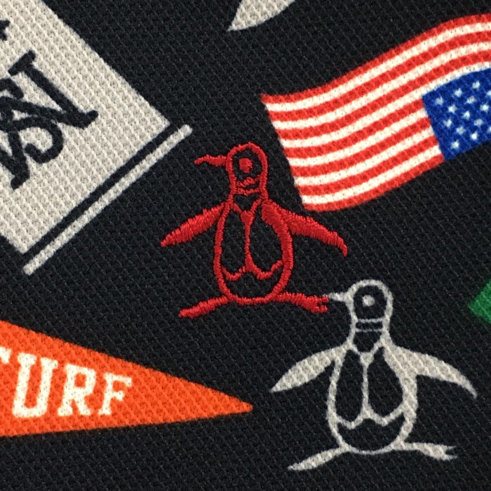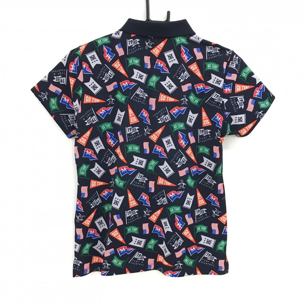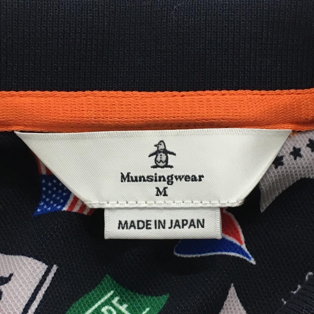 【超美品】マンシングウェア 半袖ポロシャツ ダークネイビー×マルチカラー 総柄 フラッグ レディース M ゴルフウェア Munsingwear
