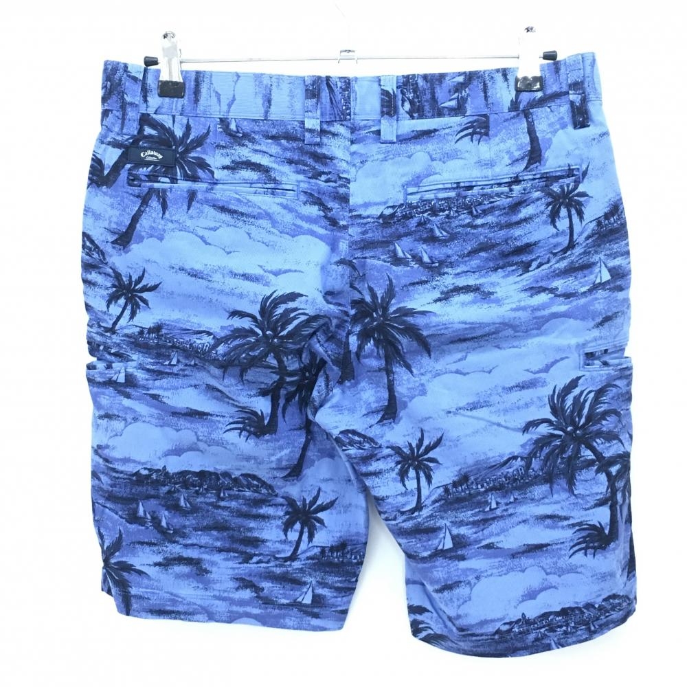 キャロウェイ ハーフパンツ ブルー×ネイビー 総柄 ヤシの木 複数ポケット メンズ L ゴルフウェア Callaway