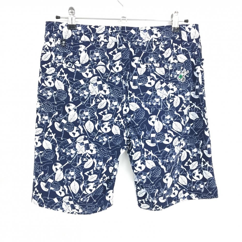 【超美品】アディダス ハーフパンツ ネイビー×白 総柄 サッカー生地 ストレッチ メンズ 85 ゴルフウェア adidas