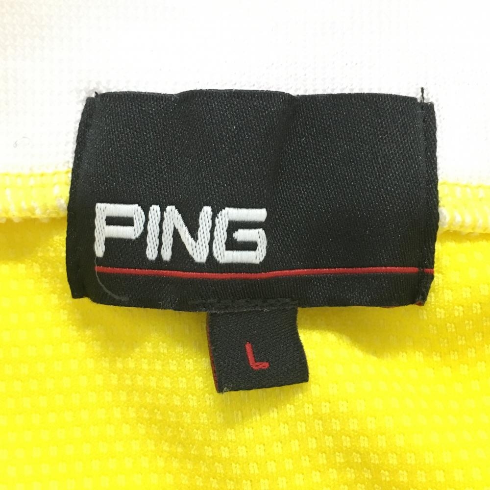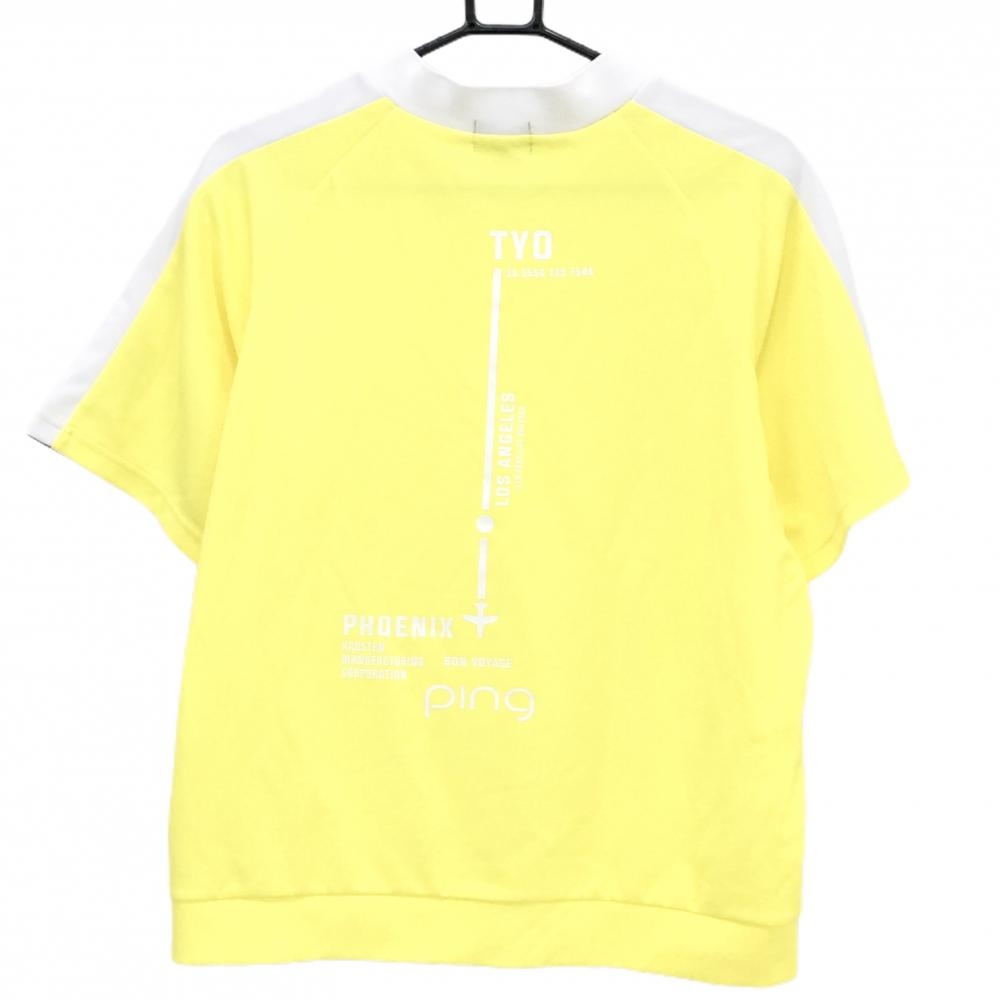 【超美品】ピン 半袖ハイネックシャツ イエロー×白 胸ロゴ刺しゅう レディース L ゴルフウェア 2025年モデル PING