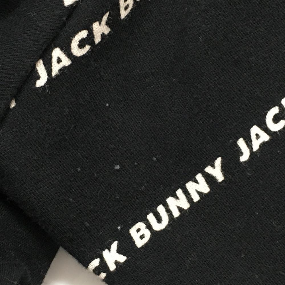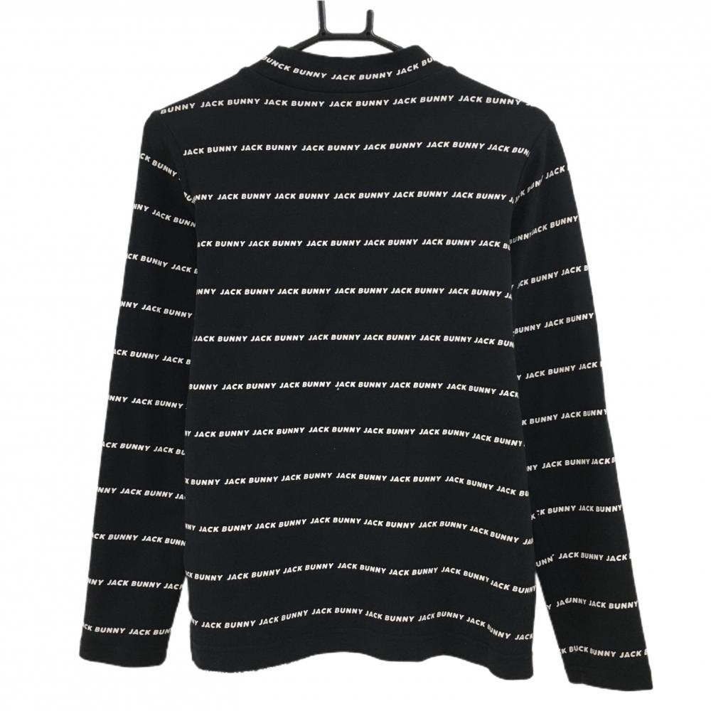 【美品】ジャックバニー 長袖ハイネックシャツ 黒×白 ロゴ総柄 コットン混 レディース 0(S) ゴルフウェア Jack Bunny