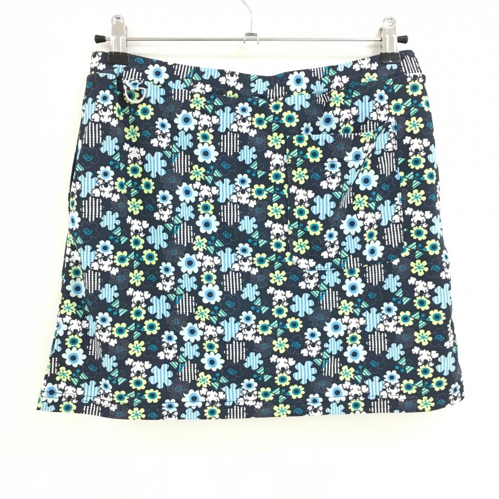 【超美品】MUスポーツ スカート ネイビー×ブルー系×グリーン系 総柄 花 犬 レディース 44(XL) ゴルフウェア M・U SPORTS