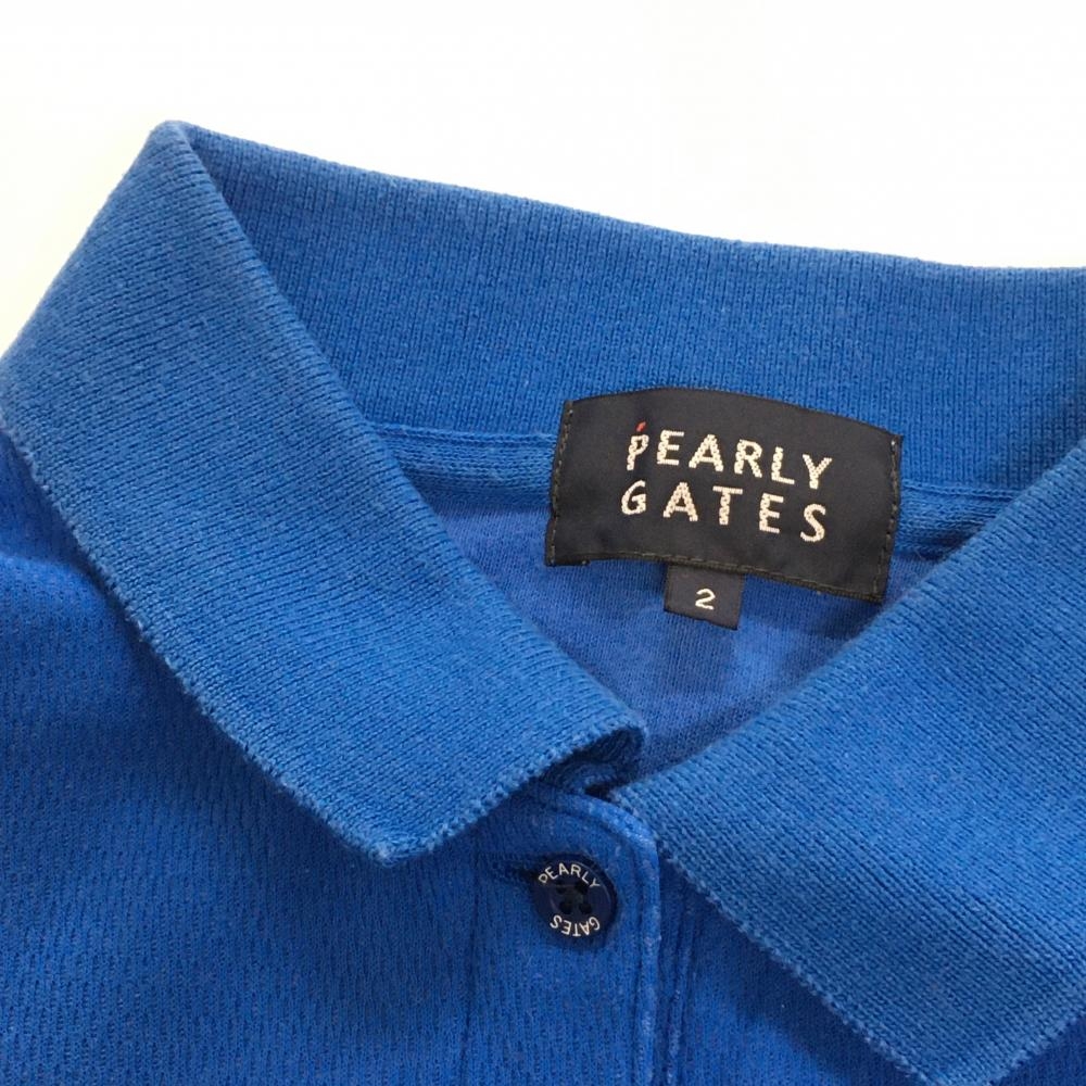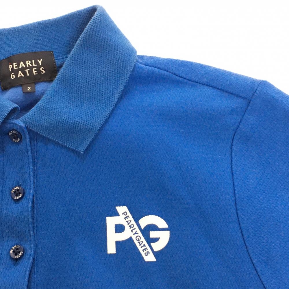 パーリーゲイツ 半袖ポロシャツ ブルー×白 ロゴプリント レディース 2(L) ゴルフウェア PEARLY GATES