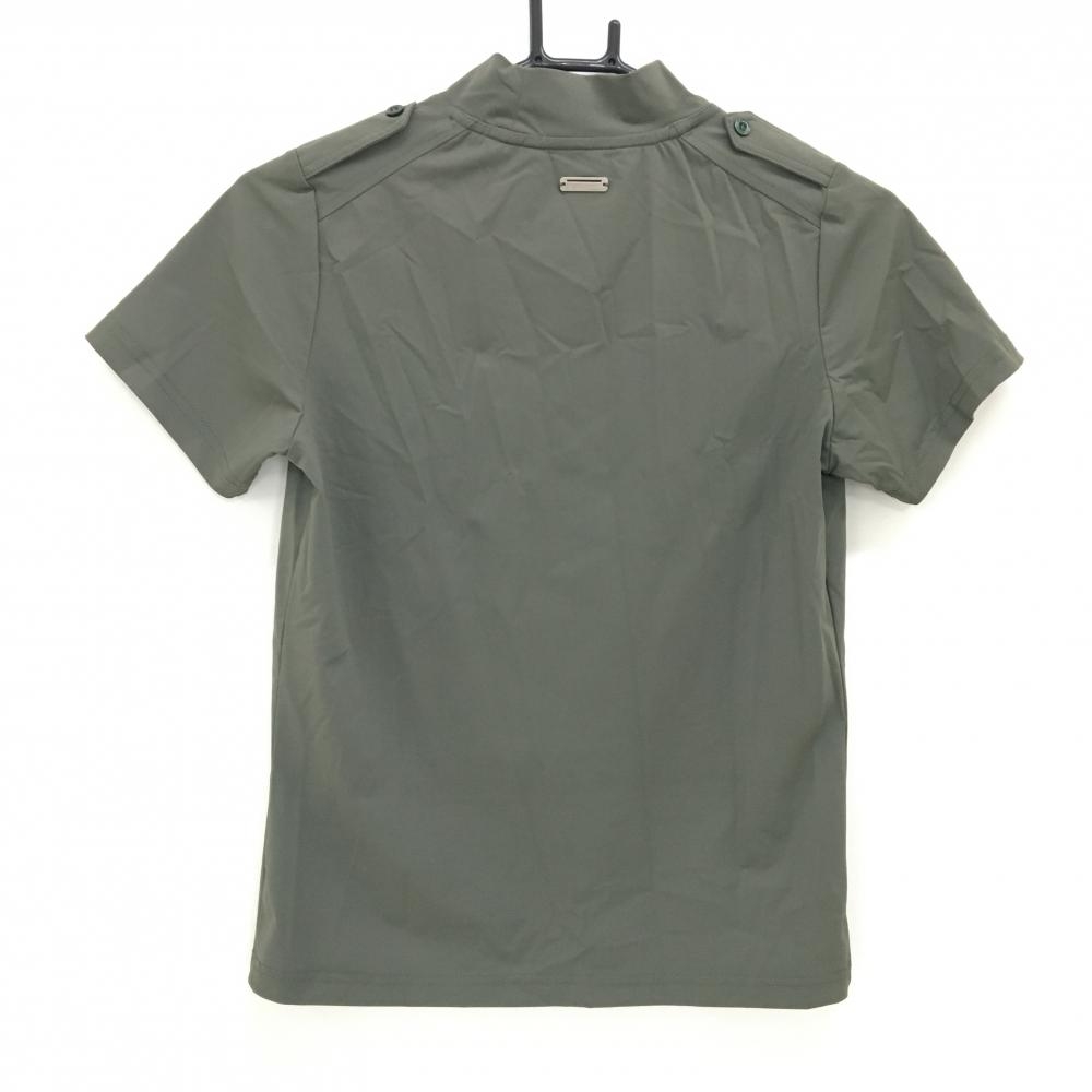 【美品】セントアンドリュース 半袖ハイネックシャツ カーキグレー×黒 フロントロゴ レディース M ゴルフウェア St ANDREWS