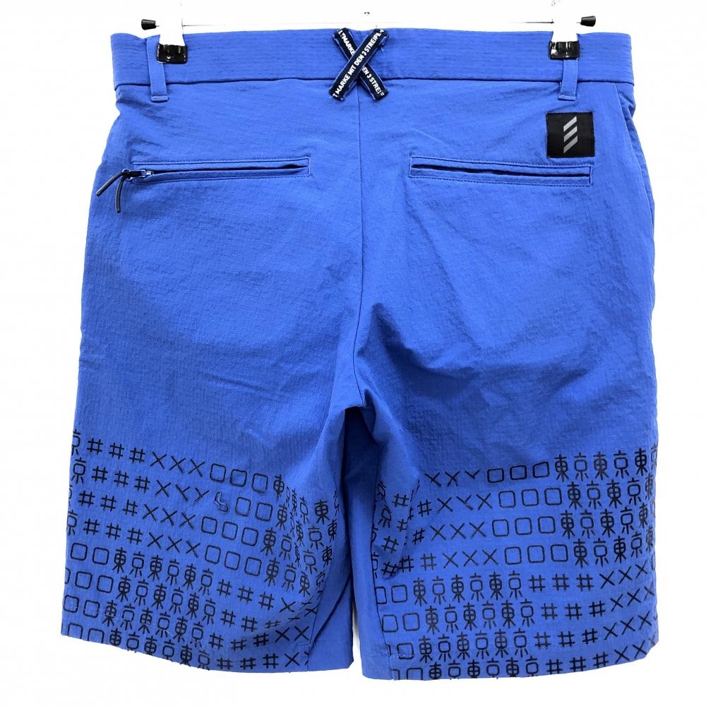 アディダス ハーフパンツ ブルー×黒 東京プリント 織生地 メンズ M ゴルフウェア adidas