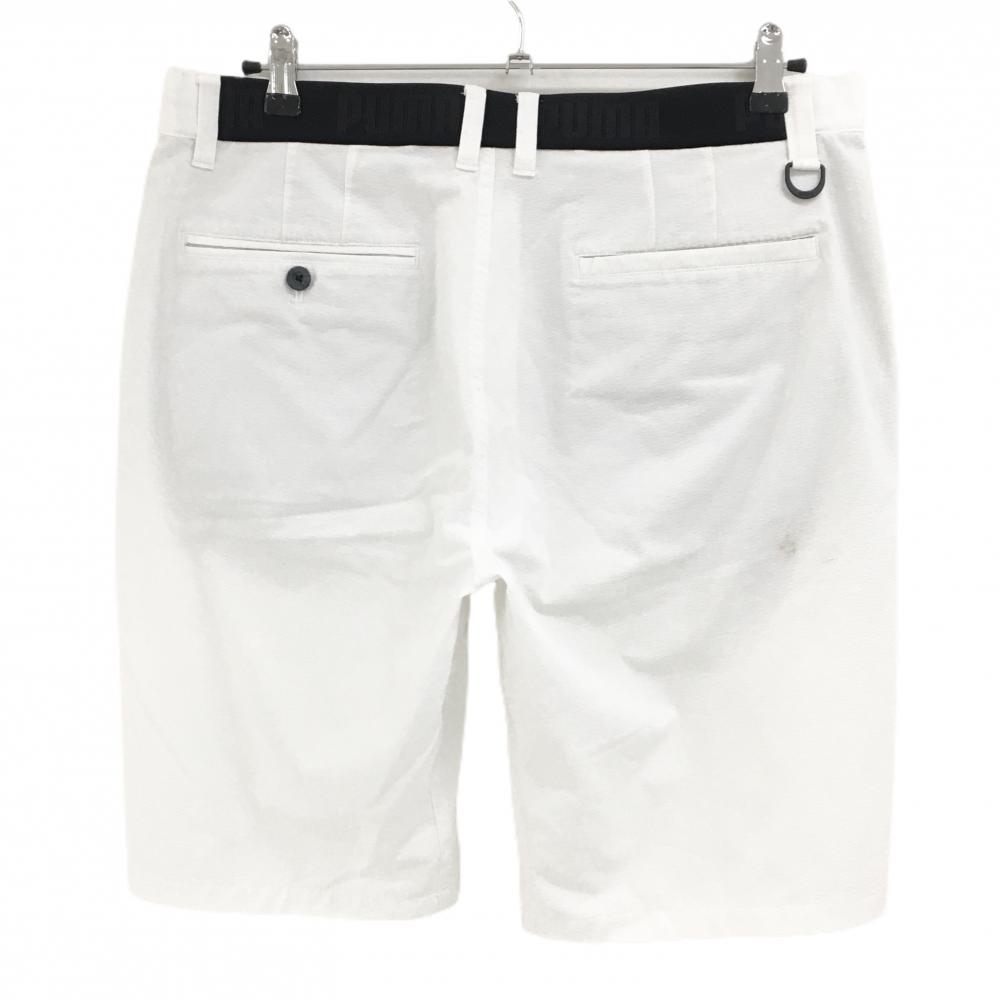 プーマ ハーフパンツ 白×黒 サッカー生地 ロゴ刺しゅう メンズ XL ゴルフウェア PUMA