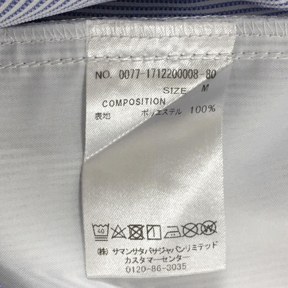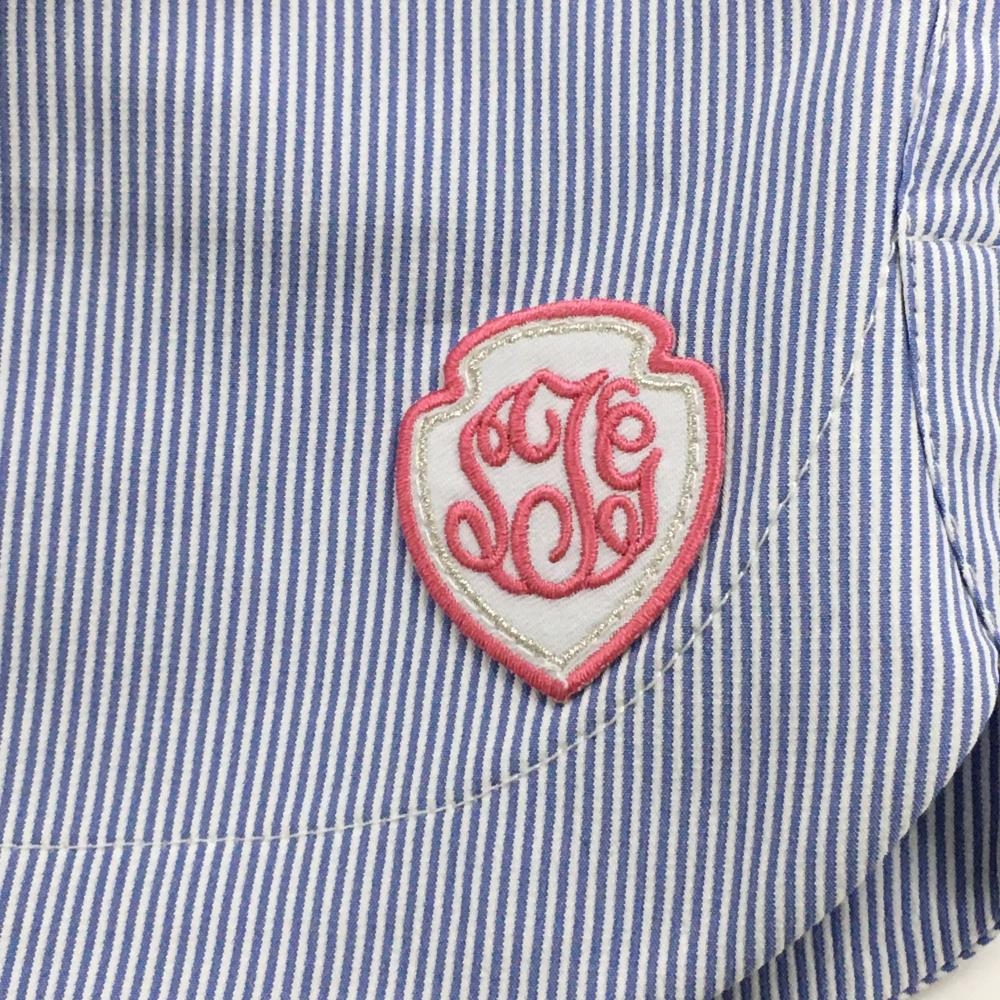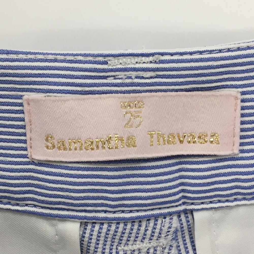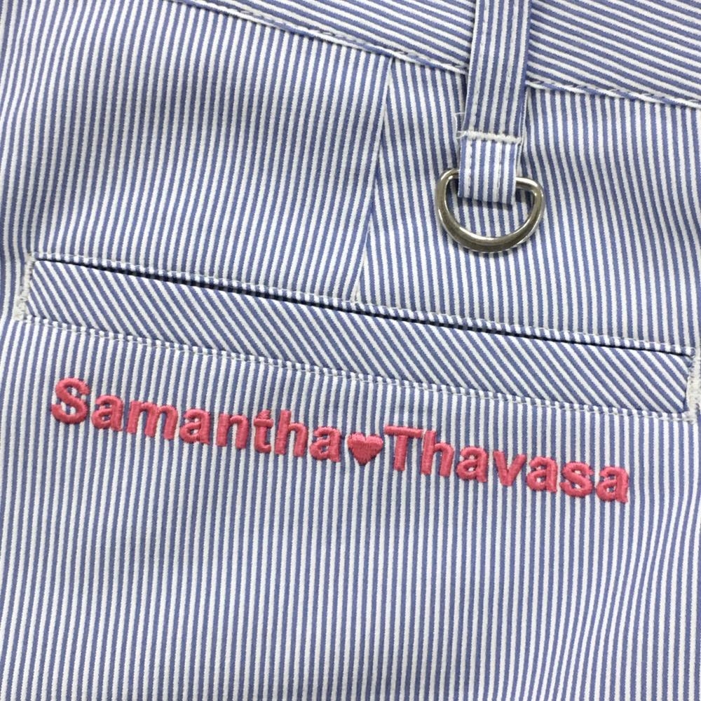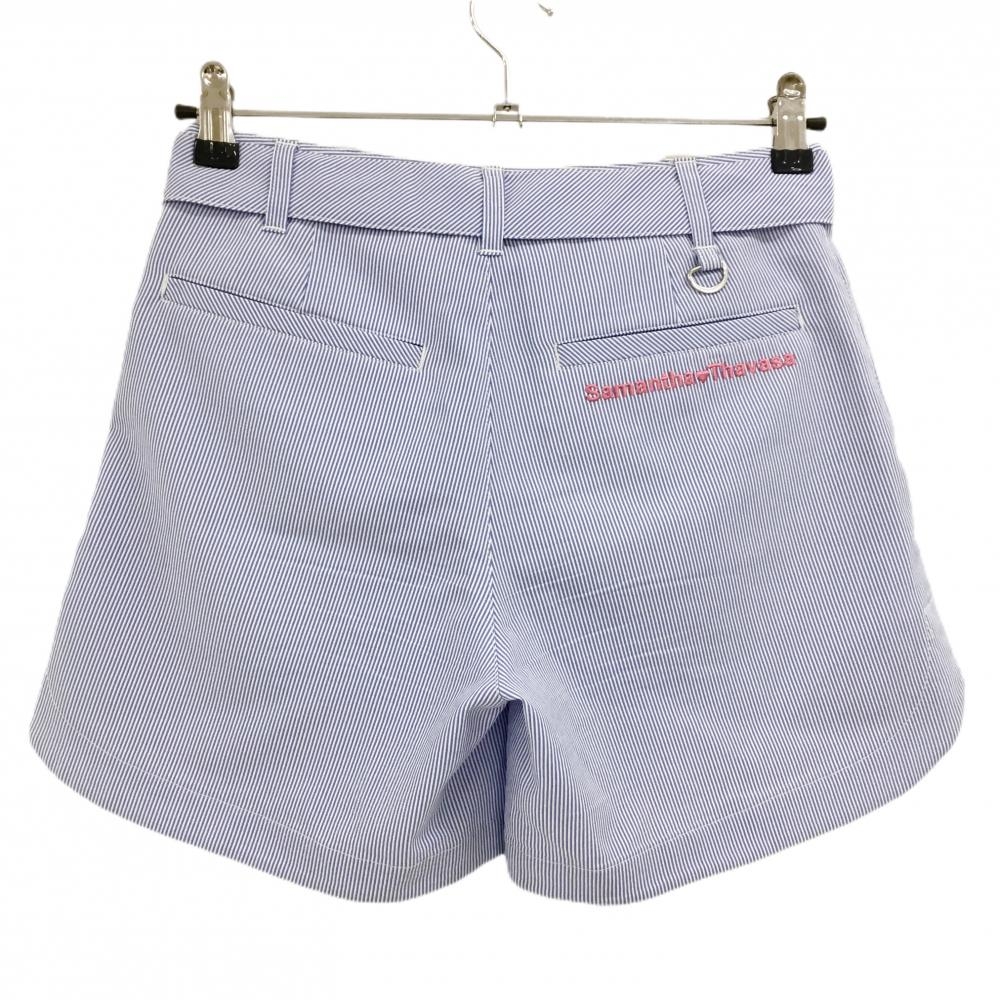 【美品】サマンサタバサUNDER25 ショートパンツ 白×ブルー ストライプ 裾ワッペン レディース M ゴルフウェア Samantha Thavasa