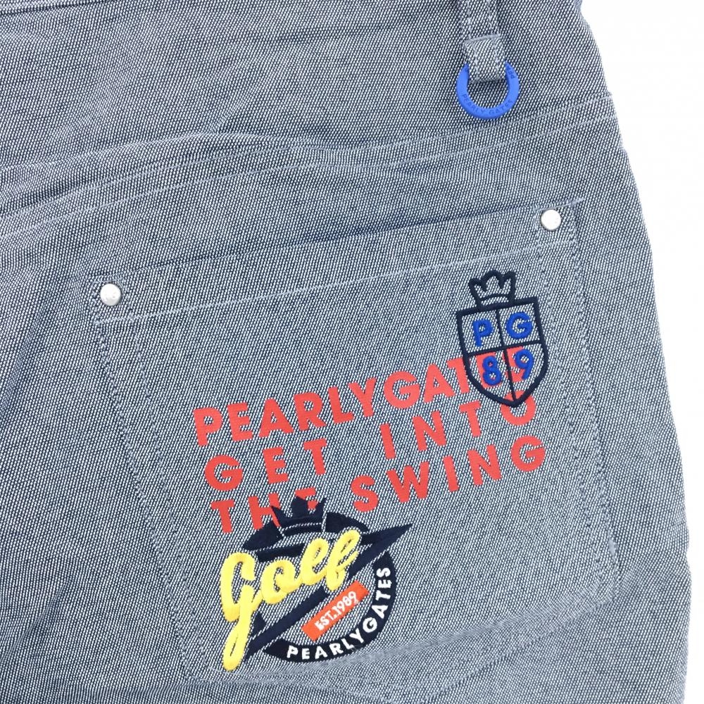 【美品】パーリーゲイツ ハーフパンツ 杢ネイビー ロゴ刺しゅう メンズ 6(XL) ゴルフウェア PEARLY GATES