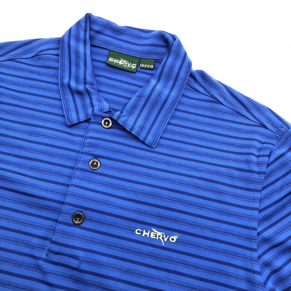 シェルボ 半袖ポロシャツ ブルー×ネイビー ボーダー SUNBLOCK メンズ M ゴルフウェア CHERVO