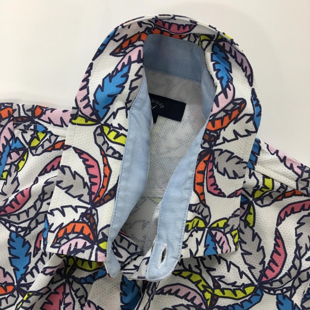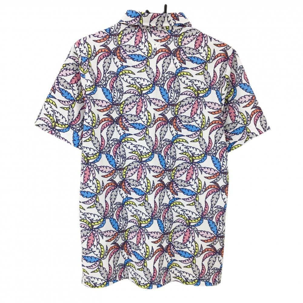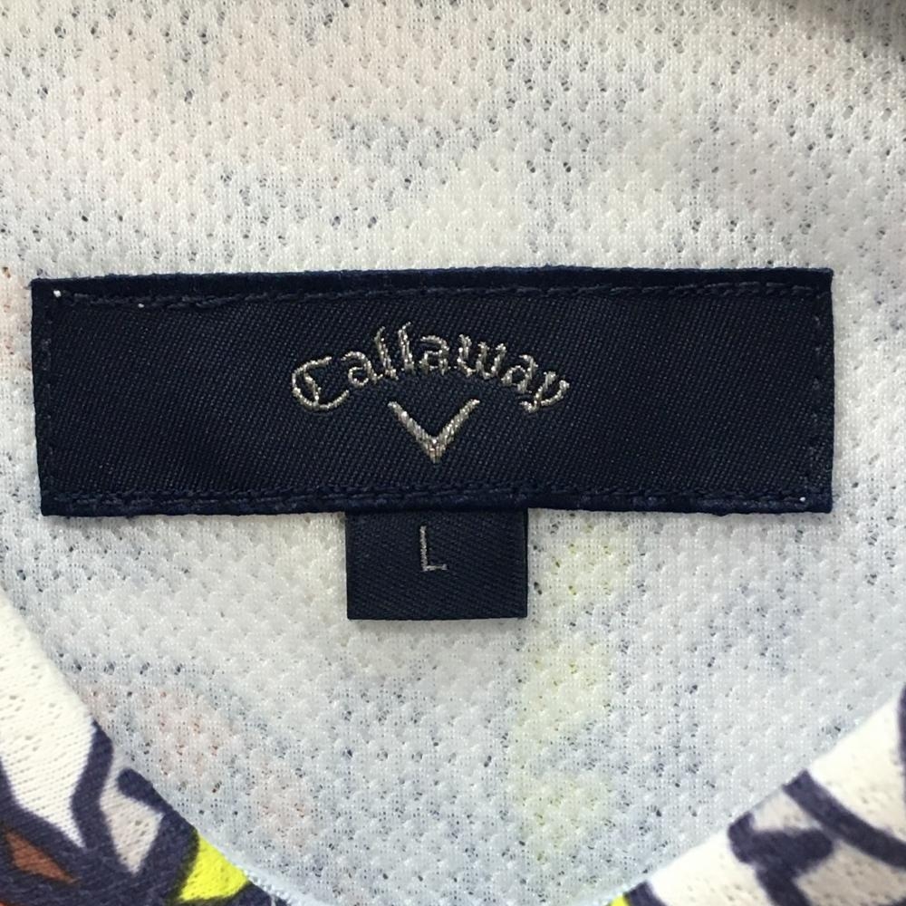 【美品】キャロウェイ 半袖ポロシャツ 白×ピンク リーフ柄 メンズ L ゴルフウェア Callaway