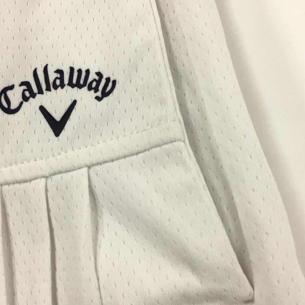 【美品】キャロウェイ プリーツスカート 白 ロゴネイビー 裏地付き レディース SS ゴルフウェア Callaway