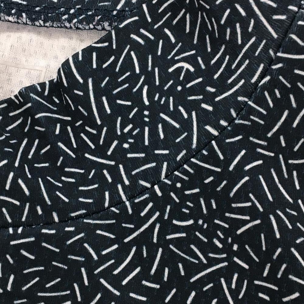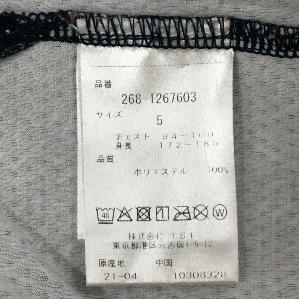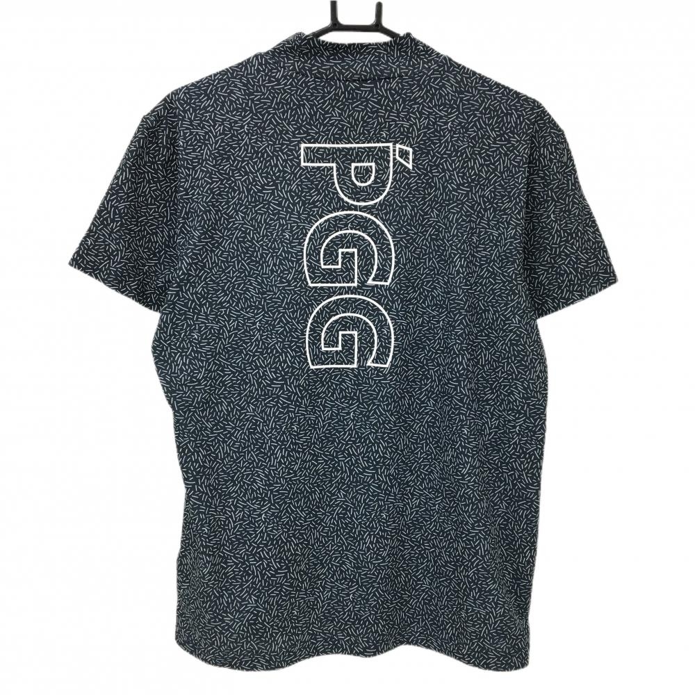 【美品】PGGパーリーゲイツ 半袖ハイネックシャツ ダークネイビー×白 総柄 背面ロゴ メンズ 5(L) ゴルフウェア PEARLY GATES