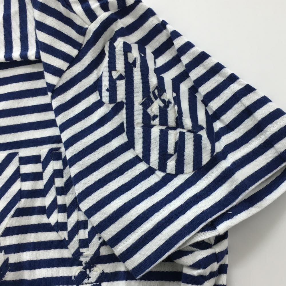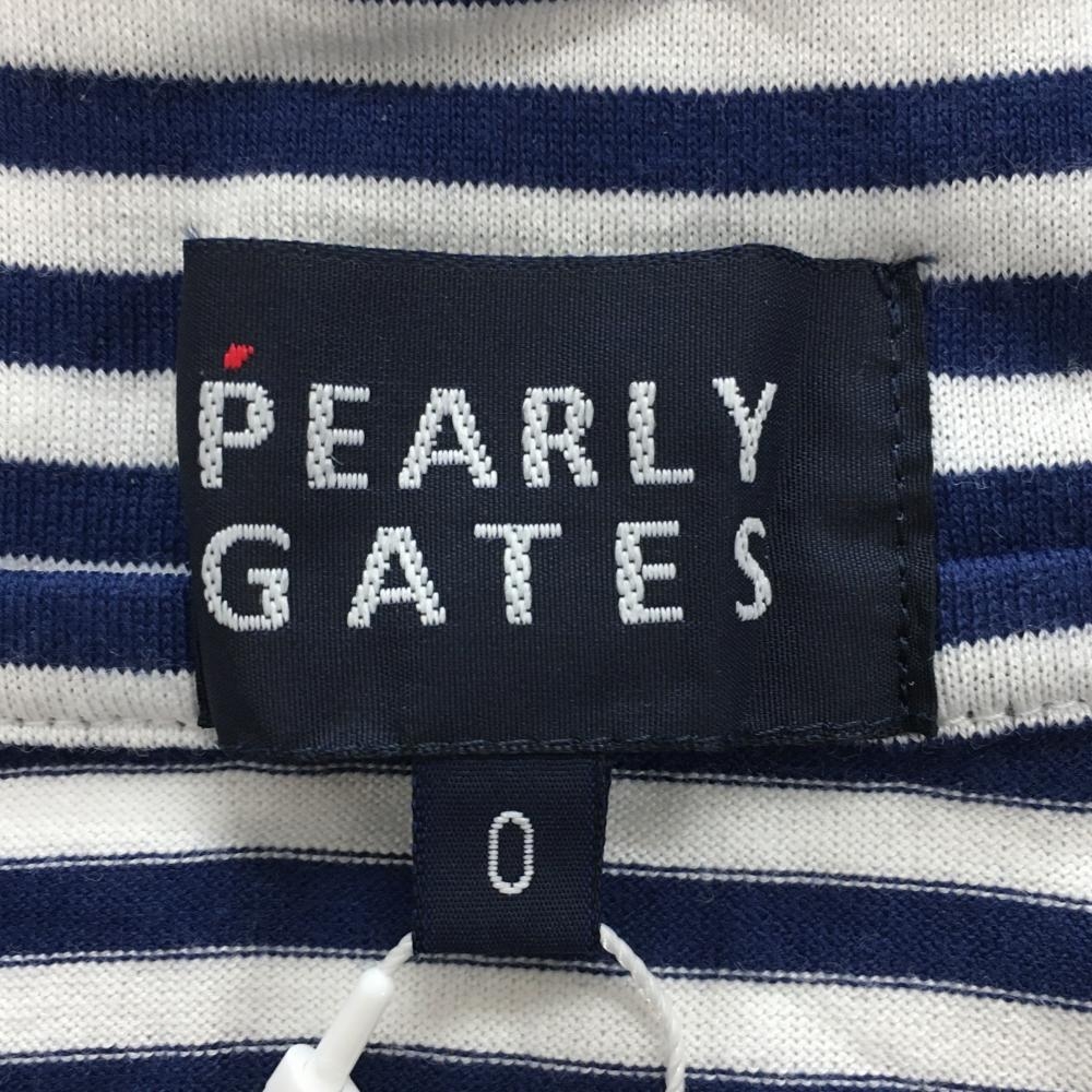 【新品】パーリーゲイツ 襟付Tシャツ ネイビー×白 ボーダー Vネック レディース 0(S) ゴルフウェア PEARLY GATES