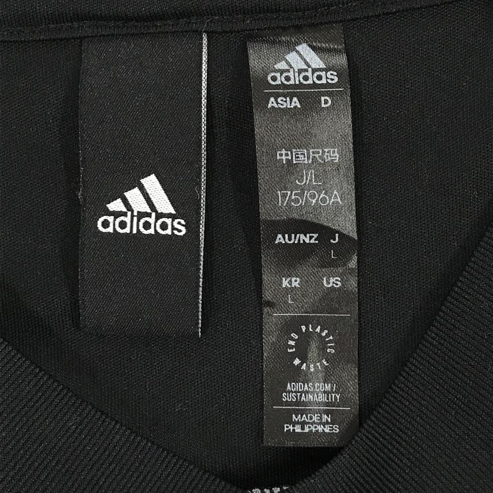 【美品】アディダス 半袖スニード 黒×グリーン×白 袖ロゴ メンズ L ゴルフウェア adidas