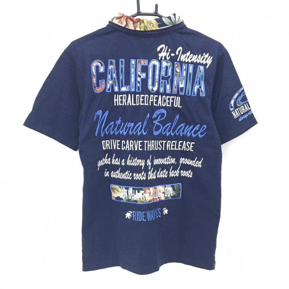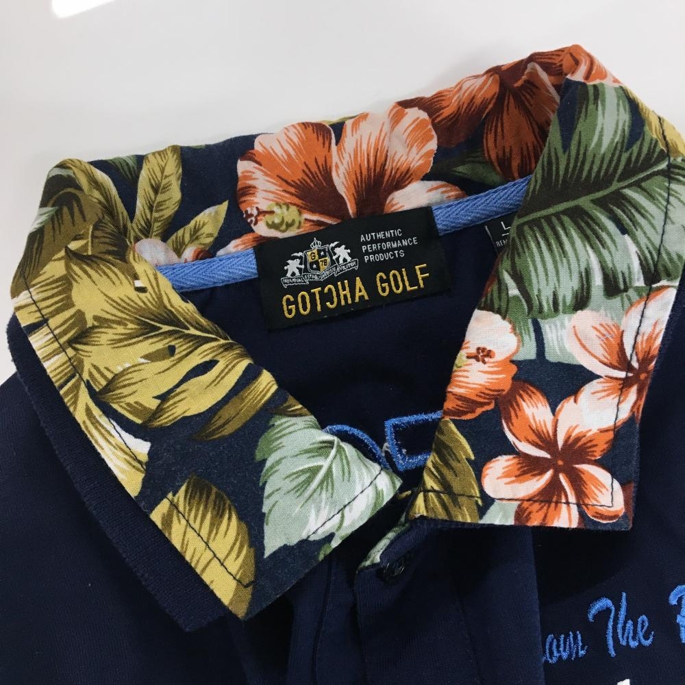 【美品】ガッチャゴルフ 半袖ポロシャツ ネイビー×ブルー 襟・背面一部花柄 バック・襟裏ロゴ メンズ L ゴルフウェア GOTCHA GOLF