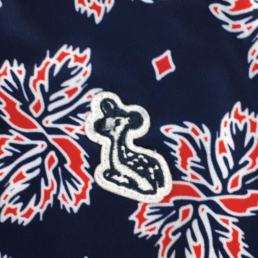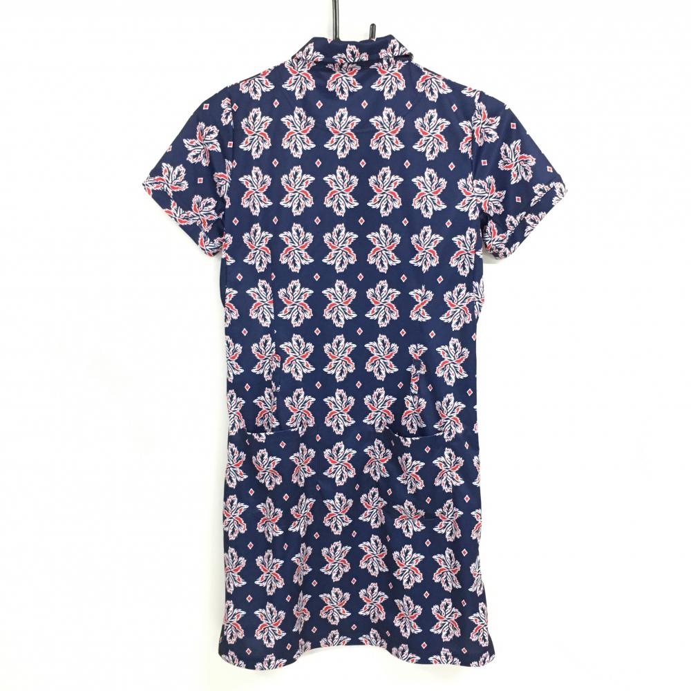 【美品】エフィカス 半袖ポロワンピース ネイビー×レッド 総柄 レディース 2(M) ゴルフウェア efficace