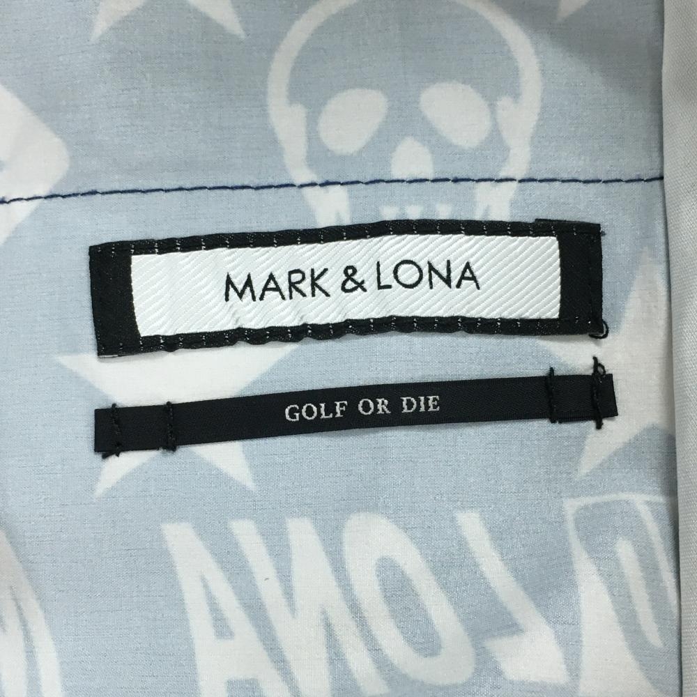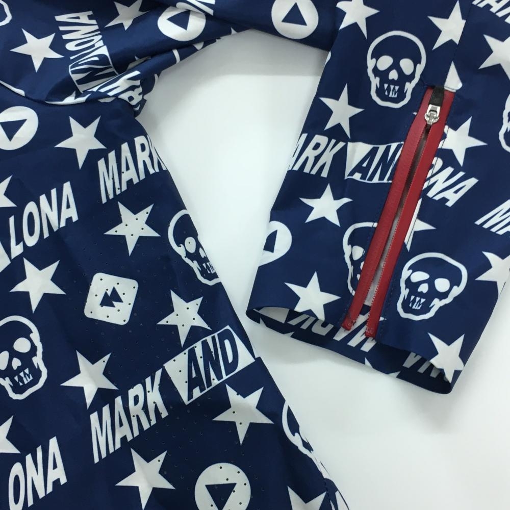 【超美品】マークアンドロナ ジップパーカー ネイビー×白 スカル・星総柄 一部パンチング メンズ 48(L) ゴルフウェア MARK&LONA