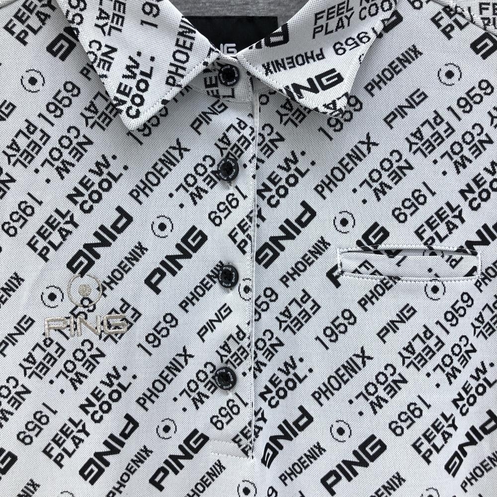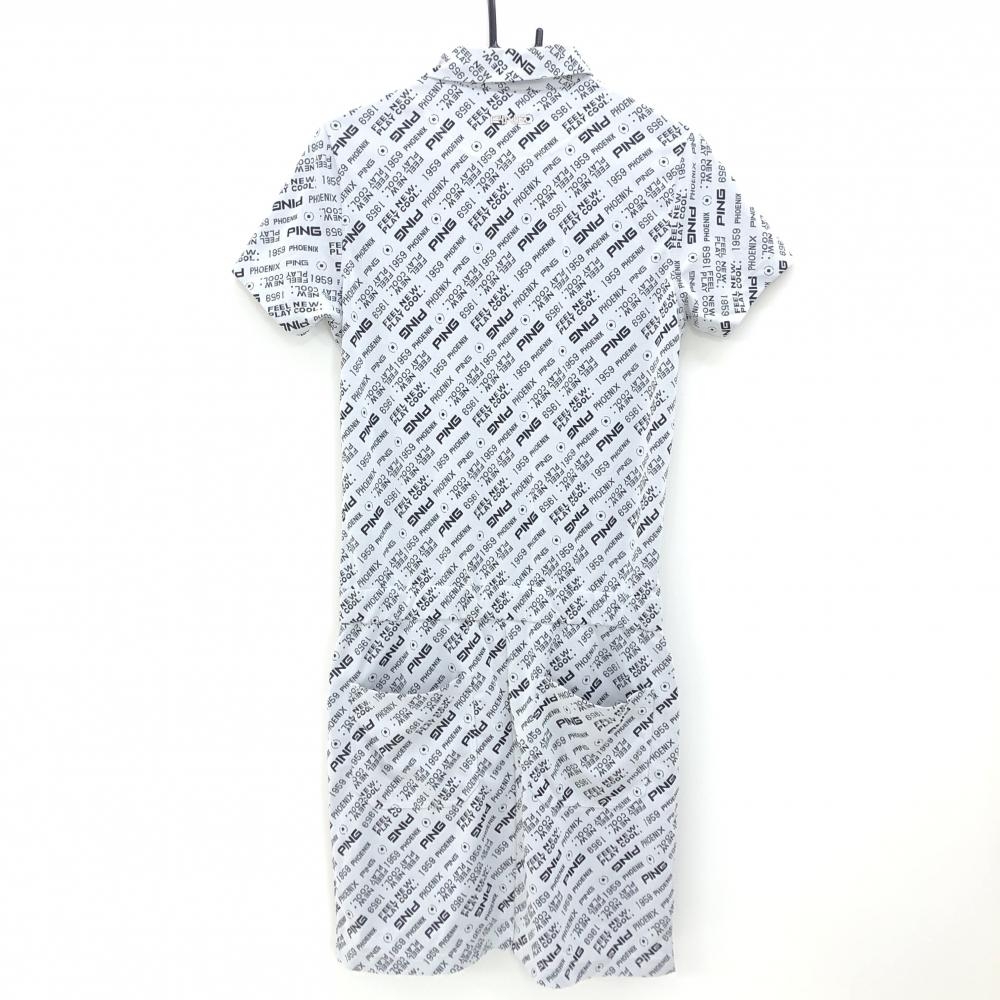 【超美品】ピン 半袖ポロワンピース ライトグレー系×黒 ロゴ総柄 スカート裏地 レディース M ゴルフウェア PING