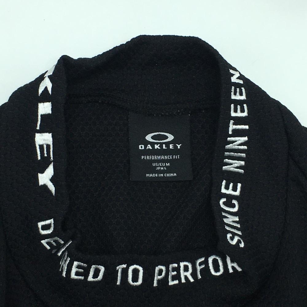 【超美品】オークリー 長袖ハイネックシャツ 黒×白 サイドペイズリー柄 織生地 ロゴ刺しゅう メンズ L ゴルフウェア Oakley