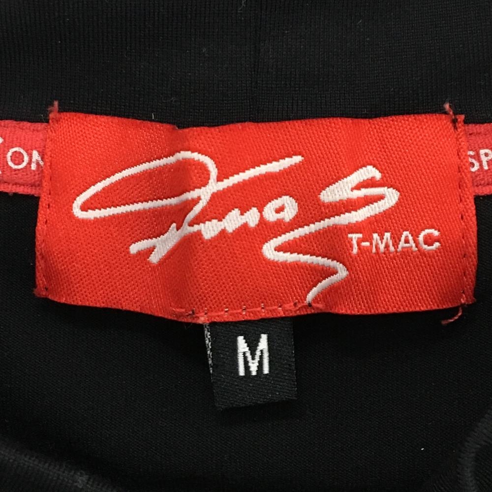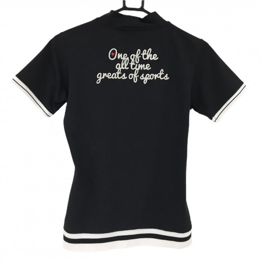 【美品】ティーマック 半袖ハイネックシャツ 黒×白 背面英字刺しゅう リブライン レディース M ゴルフウェア T-MAC