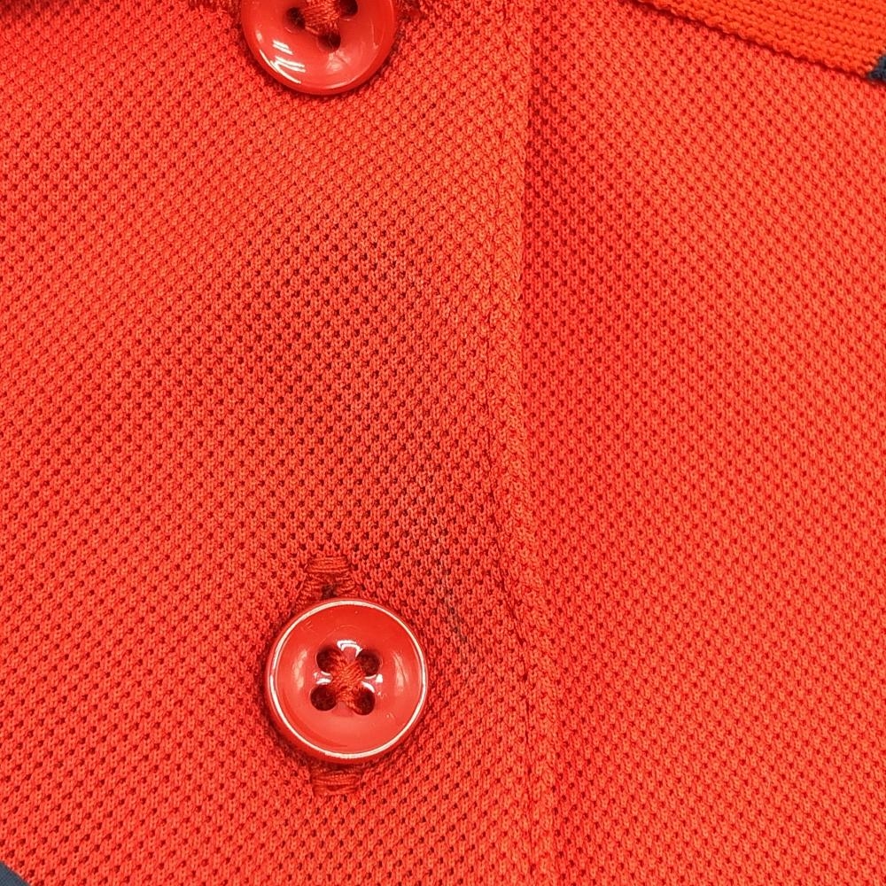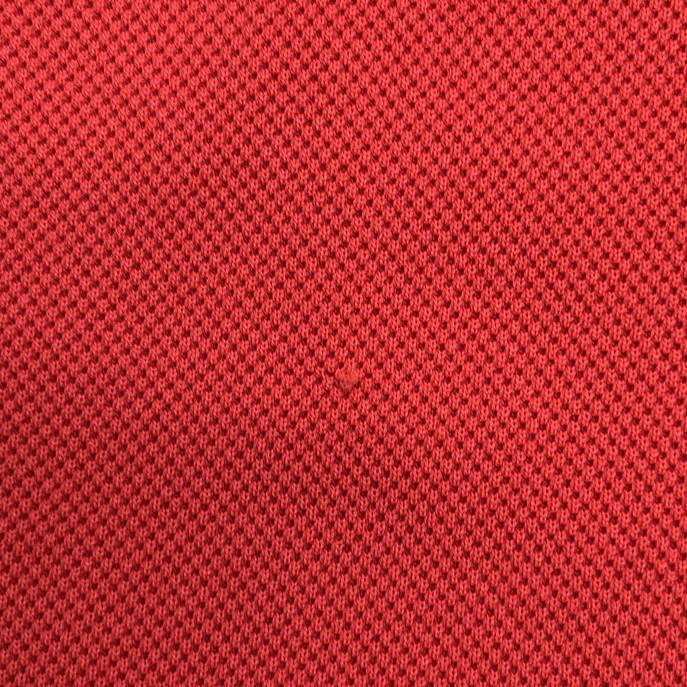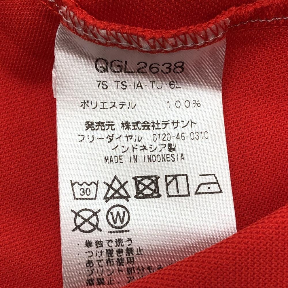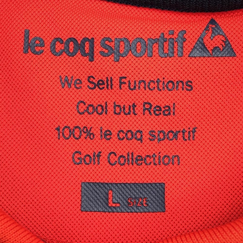 【美品】ルコックゴルフ 半袖ポロシャツ レッド×ネイビー フロント英字 ロゴ刺しゅう レディース L ゴルフウェア le coq sportif