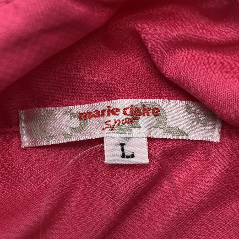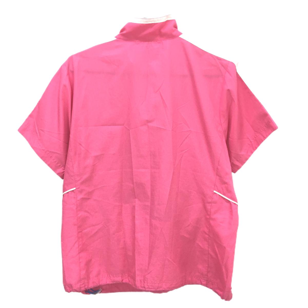 マリクレールスポール 半袖ブルゾン ピンク×白 ハーフジップ 裾ドローコード レディース L ゴルフウェア marie claire