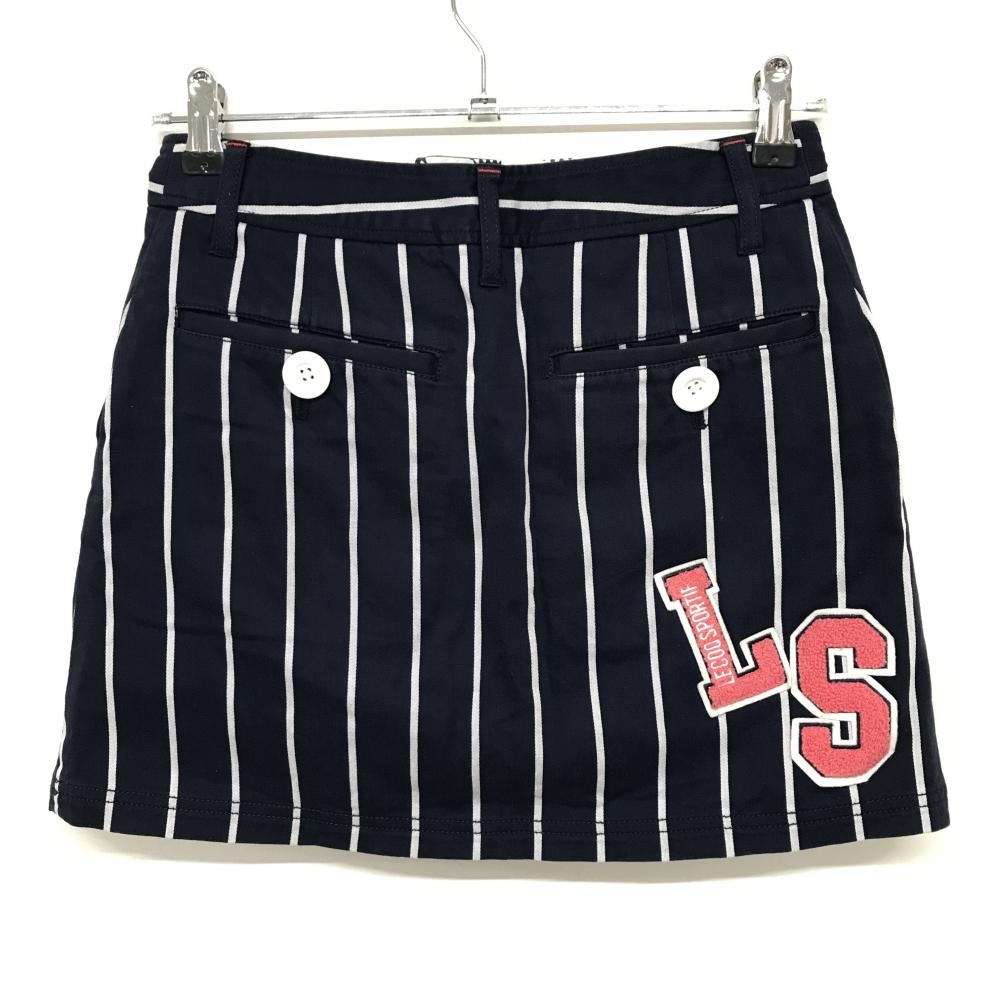 【美品】ルコック スカート ネイビー×白 ストライプ 裏一部メッシュ 内側パンツ レディース 7 ゴルフウェア le coq sportif