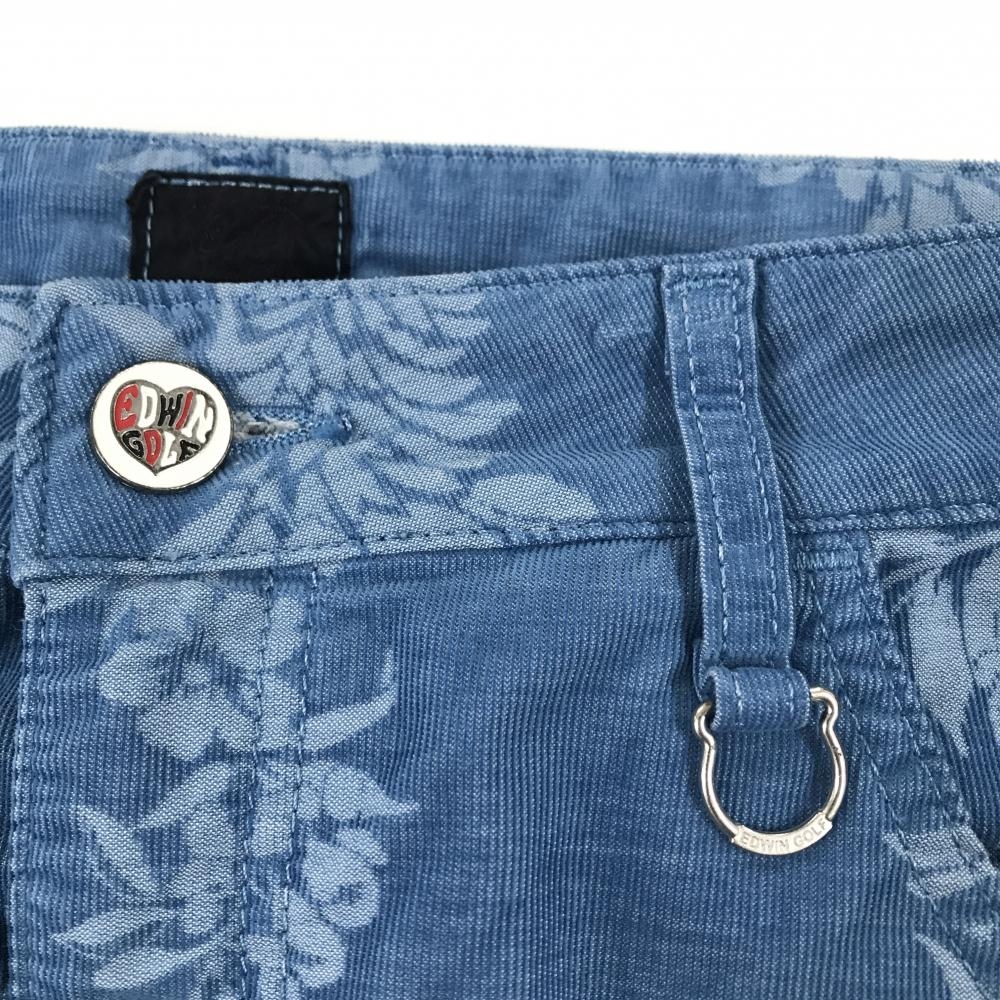 【美品】エドウィンゴルフ スカート ライトブルー 花柄 リーフ総柄 コーデュロイ調 レディース M ゴルフウェア EDWIN GOLF