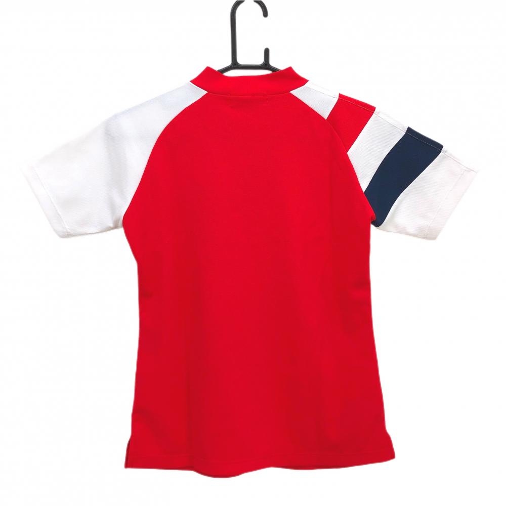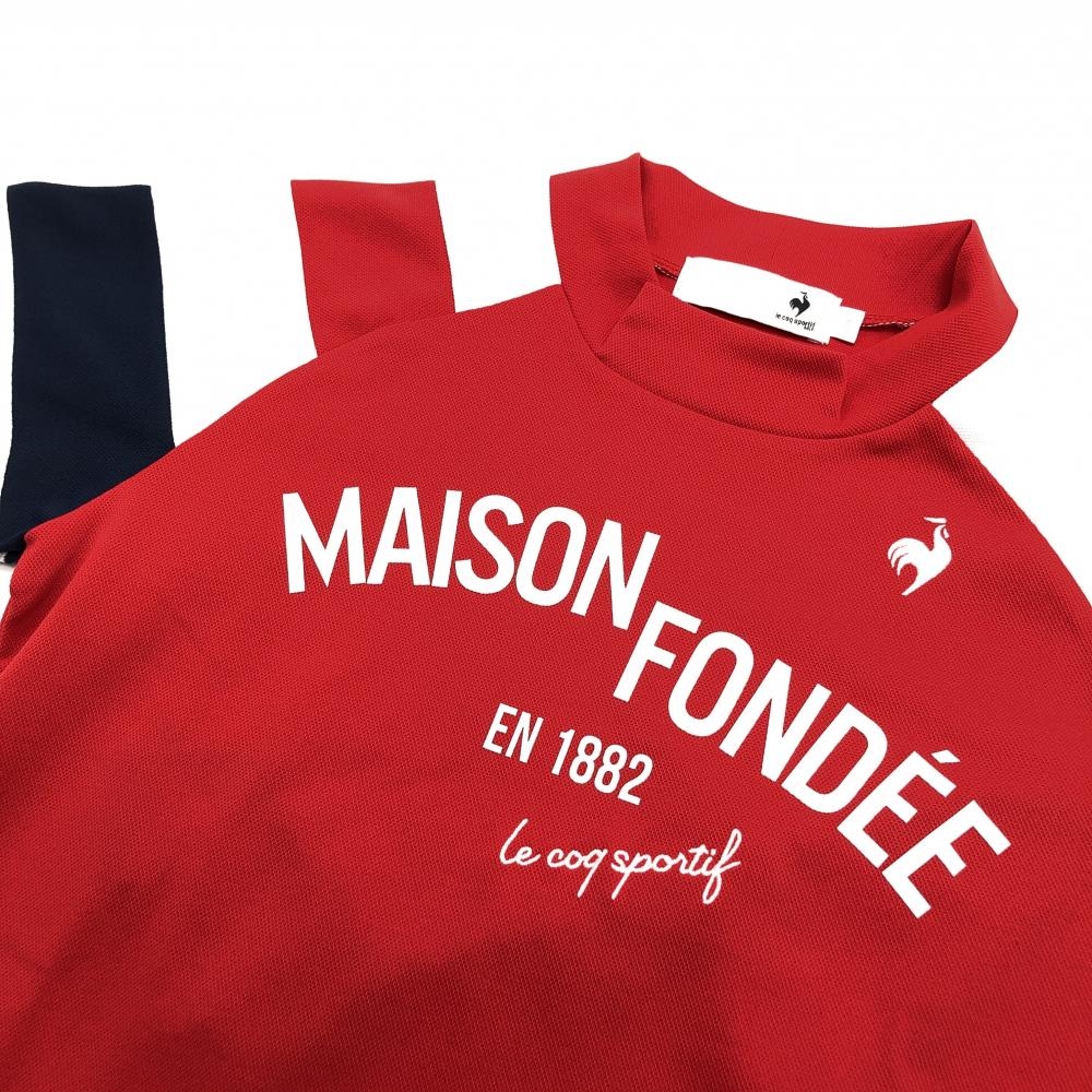 【超美品】ルコック 半袖ハイネックシャツ レッド×白 胸元プリント レディース S ゴルフウェア le coq sportif