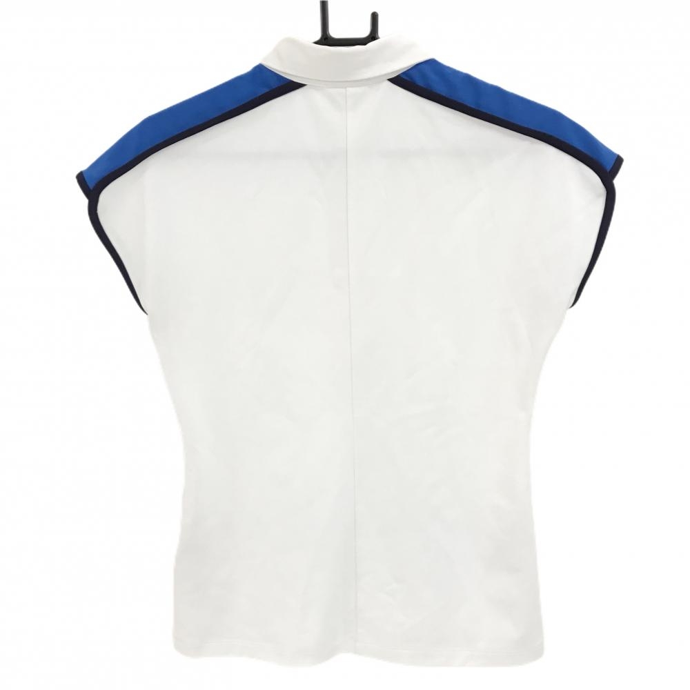 デサントゴルフ 半袖ポロシャツ 白×ネイビー パイピング 肩ロゴ フレンチスリーブ 中田英寿 レディース M ゴルフウェア DESCENTE
