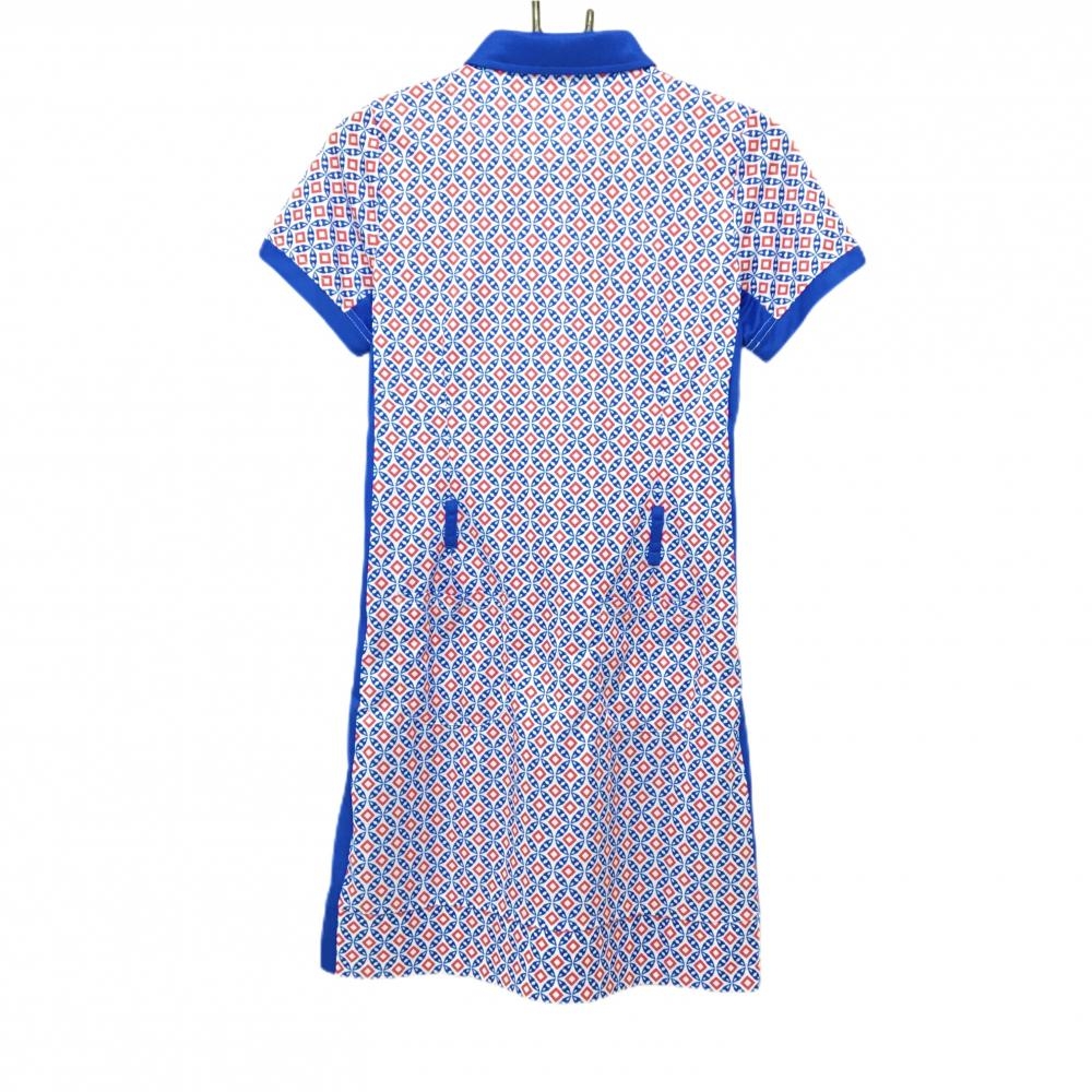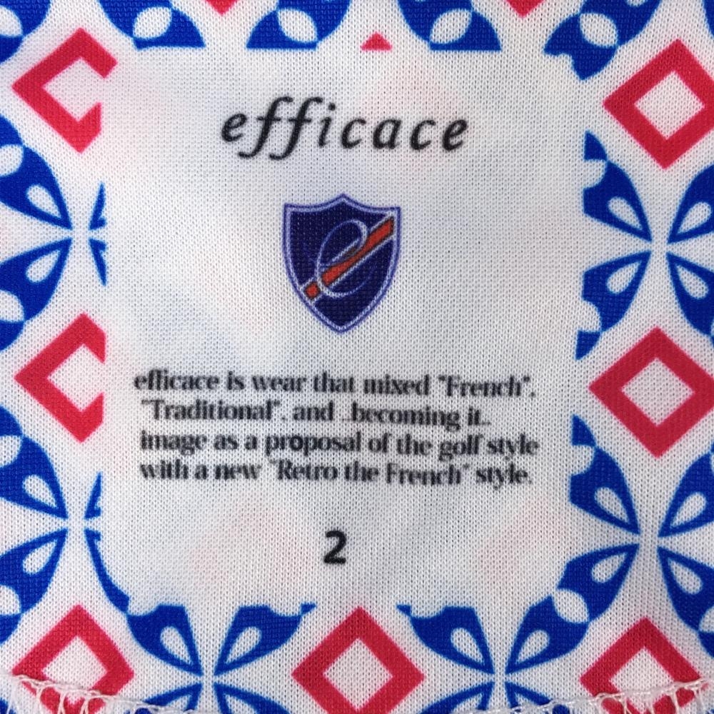 【美品】エフィカス 半袖ポロワンピース 白×ブルー×レッド 総柄 レディース 2(M) ゴルフウェア efficace