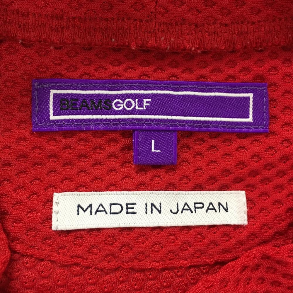 【美品】ビームスゴルフ 半袖ハイネックシャツ レッド 複数ワッペン 凹凸生地 メンズ L ゴルフウェア BEAMS GOLF
