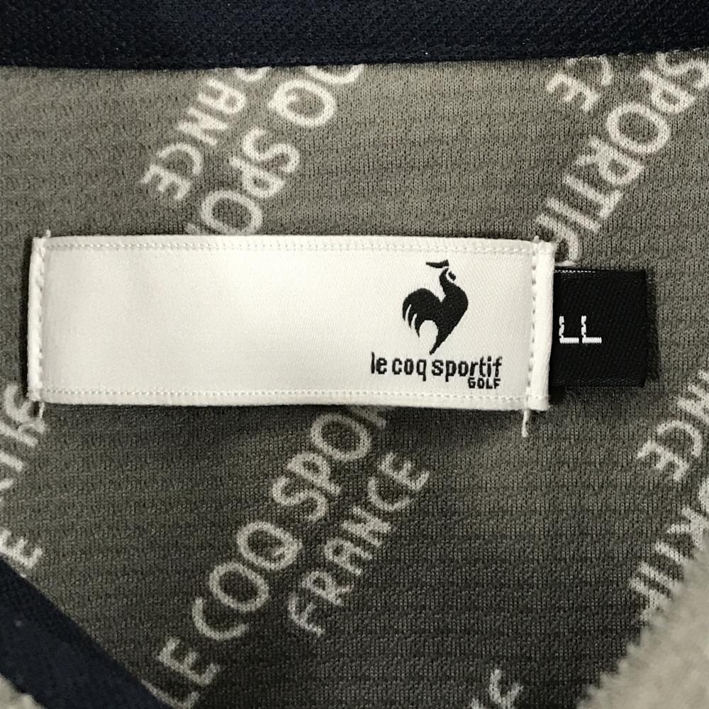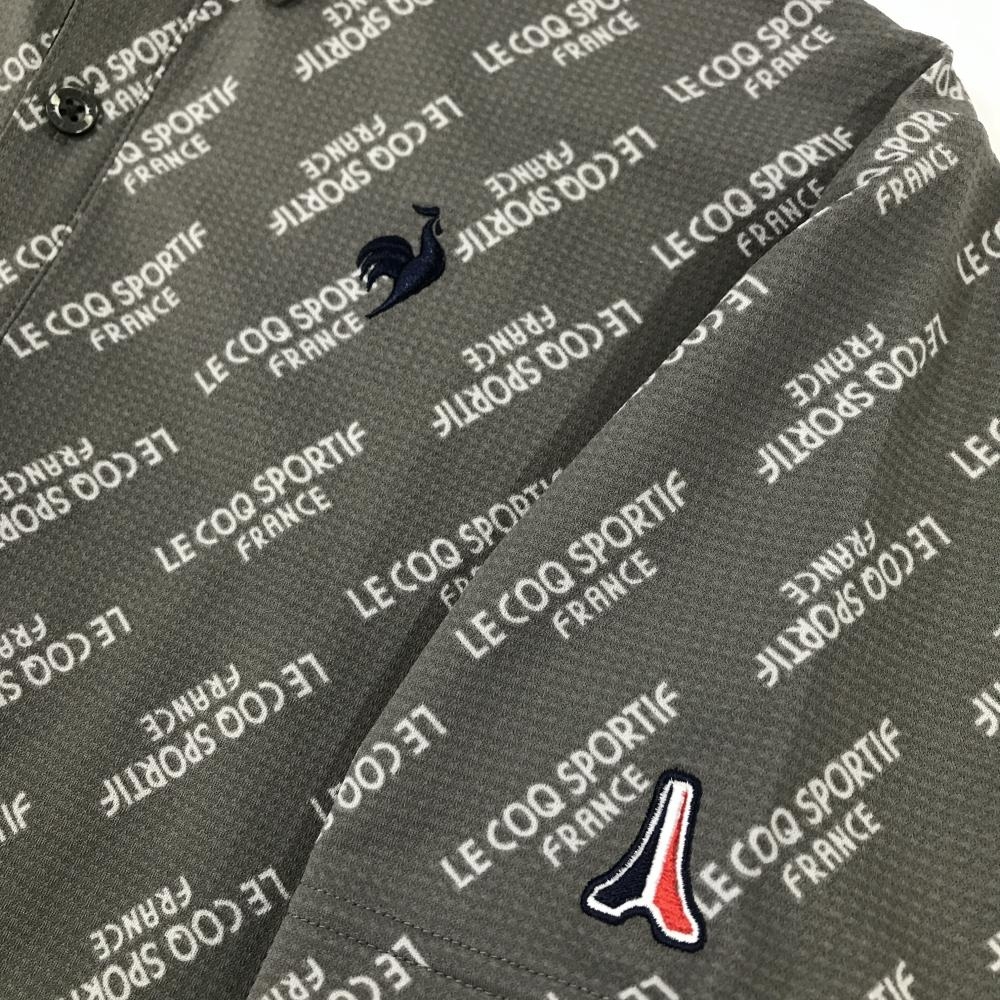 ルコックゴルフ 半袖ポロシャツ グレー×白 英字ロゴ総柄 ボタンダウン メンズ LL ゴルフウェア le coq sportif