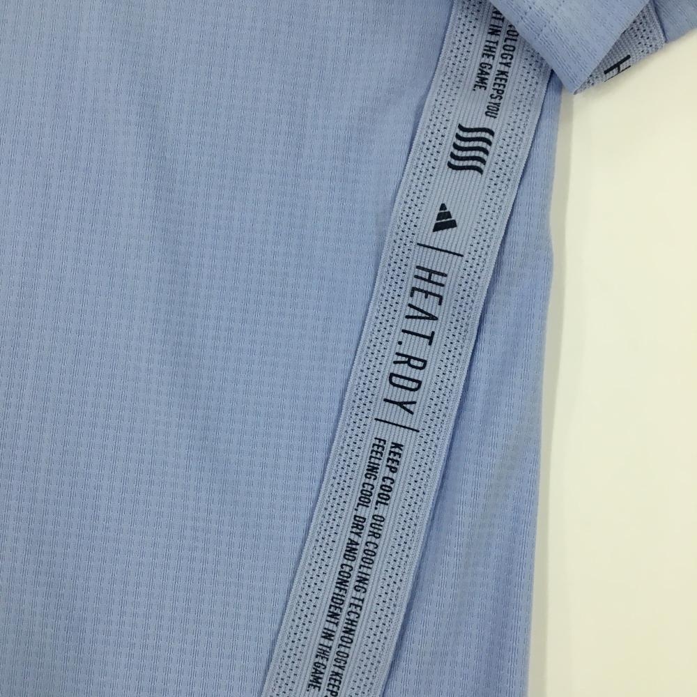 【超美品】アディダス 半袖ポロシャツ ライトブルー系 サイドプリント 立体ロゴ メンズ XL ゴルフウェア adidas