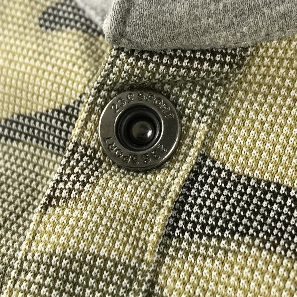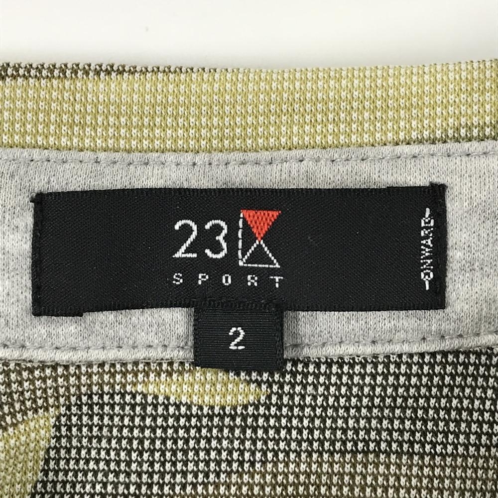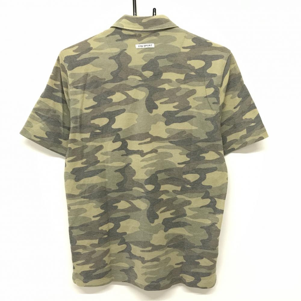 23区スポーツ 半袖ポロシャツ ライトカーキ×ブラウン カモフラ 迷彩 スナップボタン メンズ 2(L) ゴルフウェア 23区