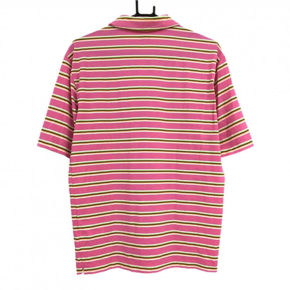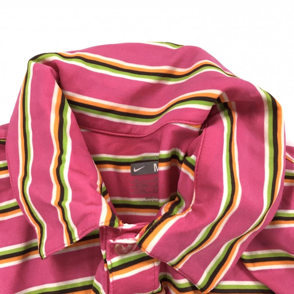 【美品】ナイキ 半袖ポロシャツ ピンク×ライトグリーン ボーダー ストレッチ メンズ M ゴルフウェア NIKE
