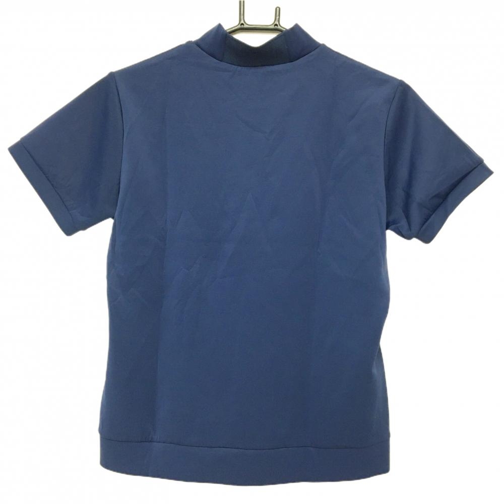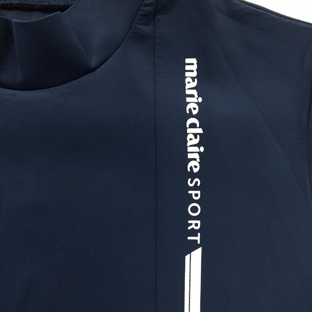 【美品】マリクレールスポール 半袖ハイネックシャツ ネイビー×白 胸元ロゴ レディース M ゴルフウェア marie claire