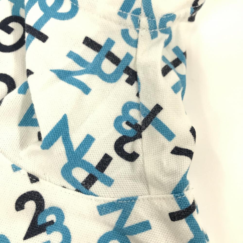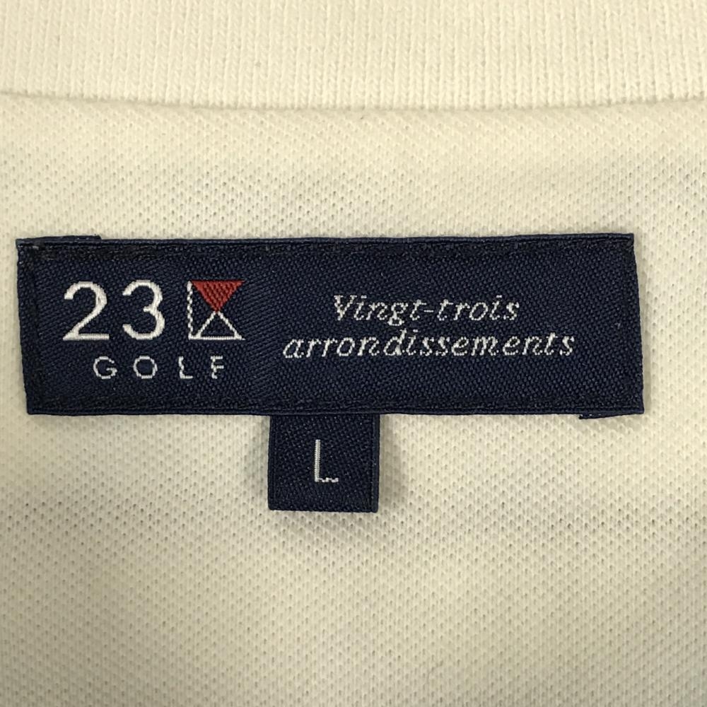 23区ゴルフ 半袖ハイネックシャツ 白×ライトブルー×ネイビー ロゴ総柄 ハーフジップ メンズ L ゴルフウェア 23区