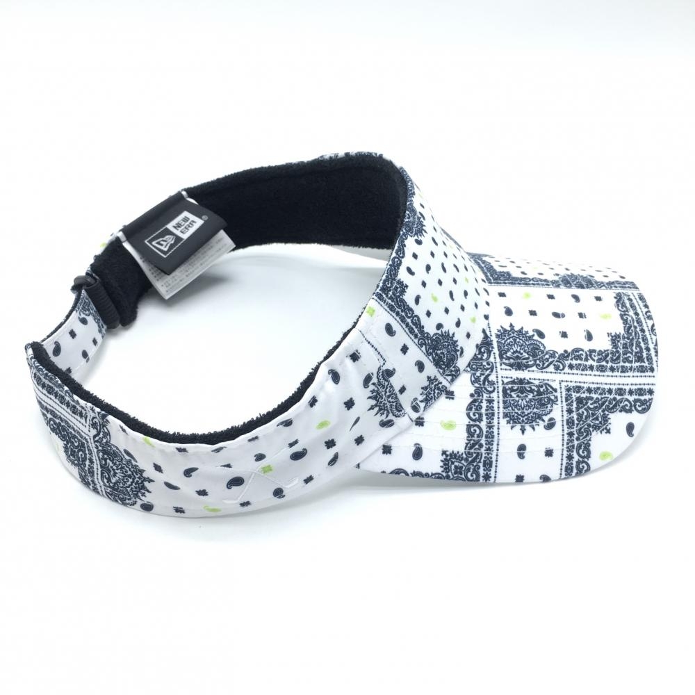 【超美品】ニューエラ サンバイザー 白×ネイビー 総柄 ゴルフウェア New Era