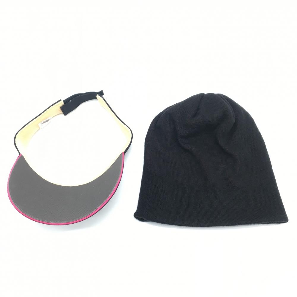 【美品】ビバハート 3WAYサンバイザー 黒×ピンク ニット部 ロゴ刺しゅう レディース 40(フリー) ゴルフウェア VIVA HEART