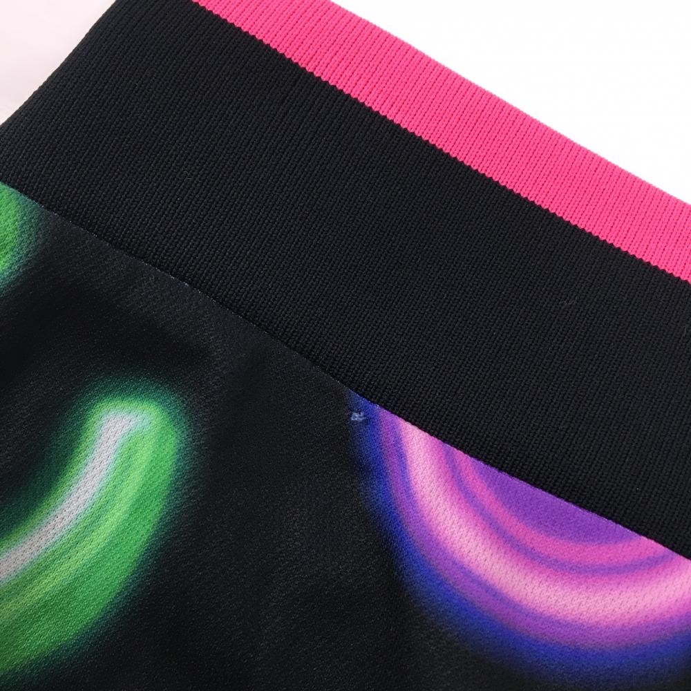 【美品】ワック スカート 黒×マルチカラー 総柄 ウエストゴム 内側インナーパンツ レディース 0(XS) ゴルフウェア WAAC