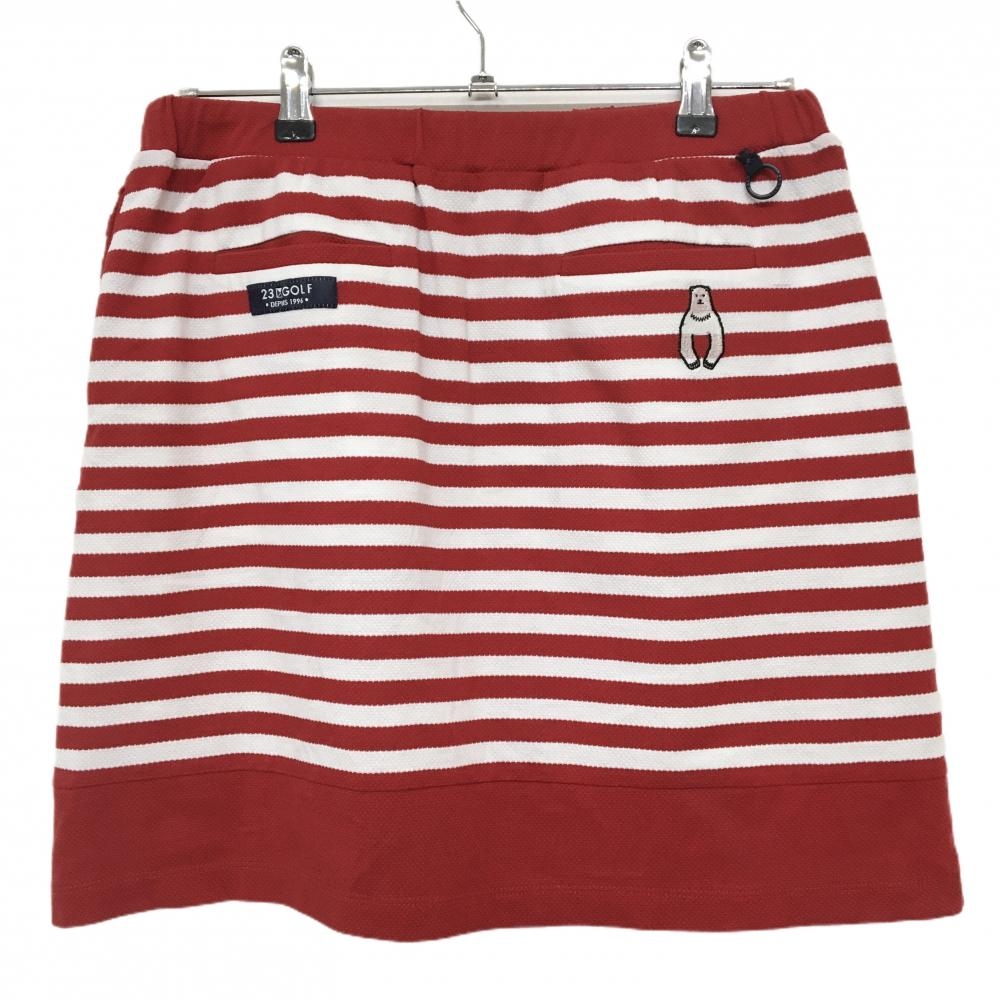 【美品】23区ゴルフ スカート レッド×白 ボーダー クマ刺しゅう 裏地付 レディース III(XL) ゴルフウェア 23区