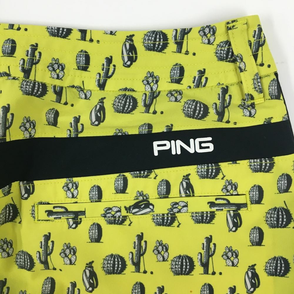 【美品】ピン スカート イエロー×黒 サボテン柄 サイド切替 レディース M ゴルフウェア PING